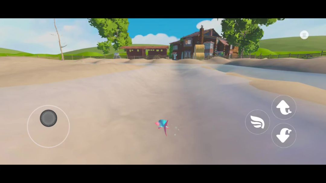再不逃离就会变成“飞鱼罐头” 飞鱼技能简介:拥有6s左右的滑翔能力,超过6s会导致窒息。整体的操作跟开飞机一样,只是通过调整鱼身的倾斜度去调整方向。 坠机:再次点击技能按钮停止飞行,需注意不是直线下落,会随着你飞行方向斜着落下。 飞鱼篇第一关 备注:如果上面水洼那关飞得好的话是可以直接跳过上图的水坑,到下图的沟渠中;不过会错过一个面包。 本关主要分为两个阶段:起点→中间沟渠→终点 第一阶段比较简单