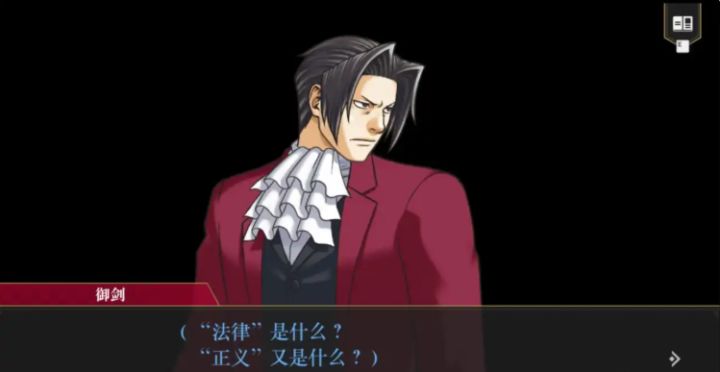 而即使在案件推进的过程中,游戏也一直逼迫着御剑作出其中的选择——比较巧妙的情节设计也恰对应了这一道德难题:师父对程序正义的绝对追求终究致使了自己的失败、义贼过于极端地伸张法律之外的正义最后也未落得好下场,这么看来,似乎追求法之道与人之道都并非最佳的选择。