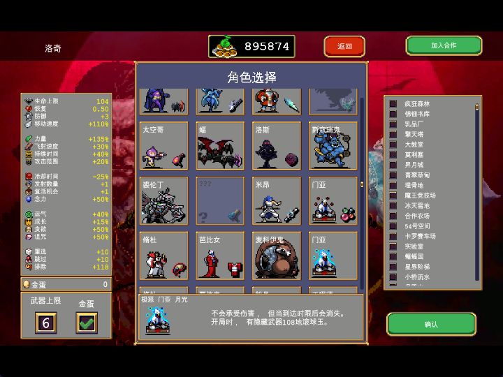 在关卡选择上有标记,意味着该地图中有关卡神器,进入地图跟随绿色指示箭头拾取即可解锁,为我们解锁更多的游戏功能;在战绩成就里面,可以看到超多任务,选择什么人物存活多久或者将什么武器升到多少级,就能解锁新的游戏道具;游戏中还有许多隐藏的秘密等待着我们来发掘,然后解锁许多神奇而强大的角色;有意思的东西太多了,根本讲不完。