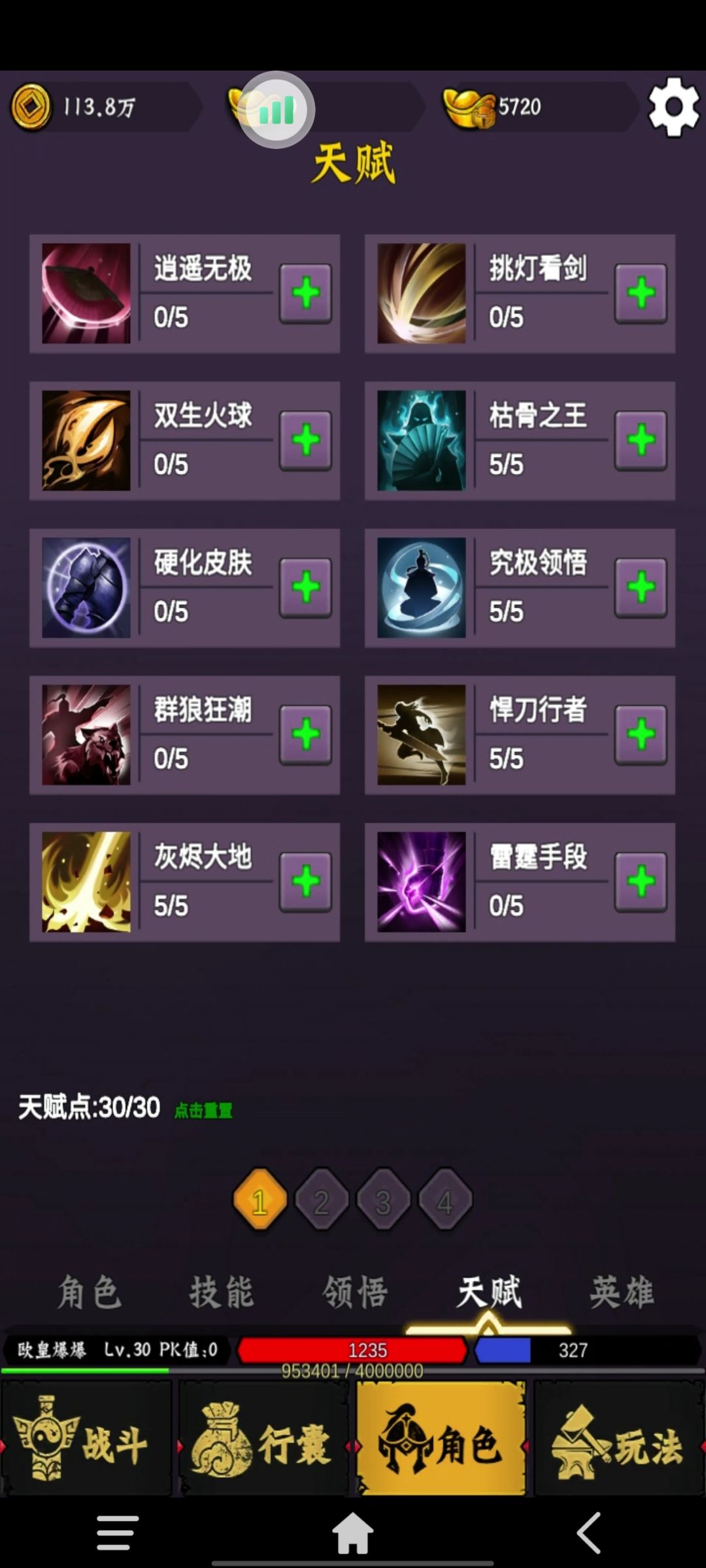 少废话,直接让新人少走弯路 1.开局选折蛋属性,随机哪个属性都行,已经不是蛋一时候优先火属性了, 2.建立好人物进游戏,优先把包裹里面双倍吃了,木剑带起来杀鸡 3.角色界面领悟练功点入境观心先练到3级,其它的几个陆续练到3级,3级可以领悟一次,领悟的功法随缘,每天可以重置一次 4.前期基本的跟着等级走点完,一直杀鸡杀到1W只鸡在出图,也可以先跑后面图打点装备在回去杀鸡,到8级还是10级可以去危险图