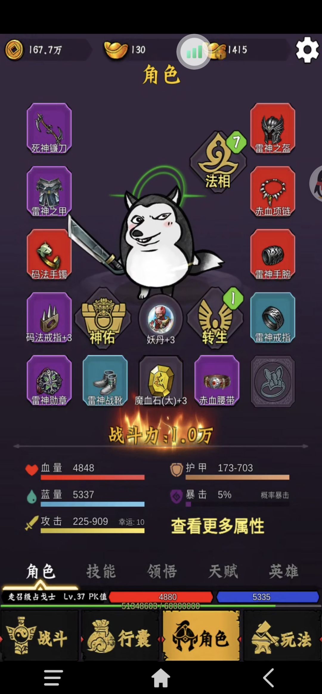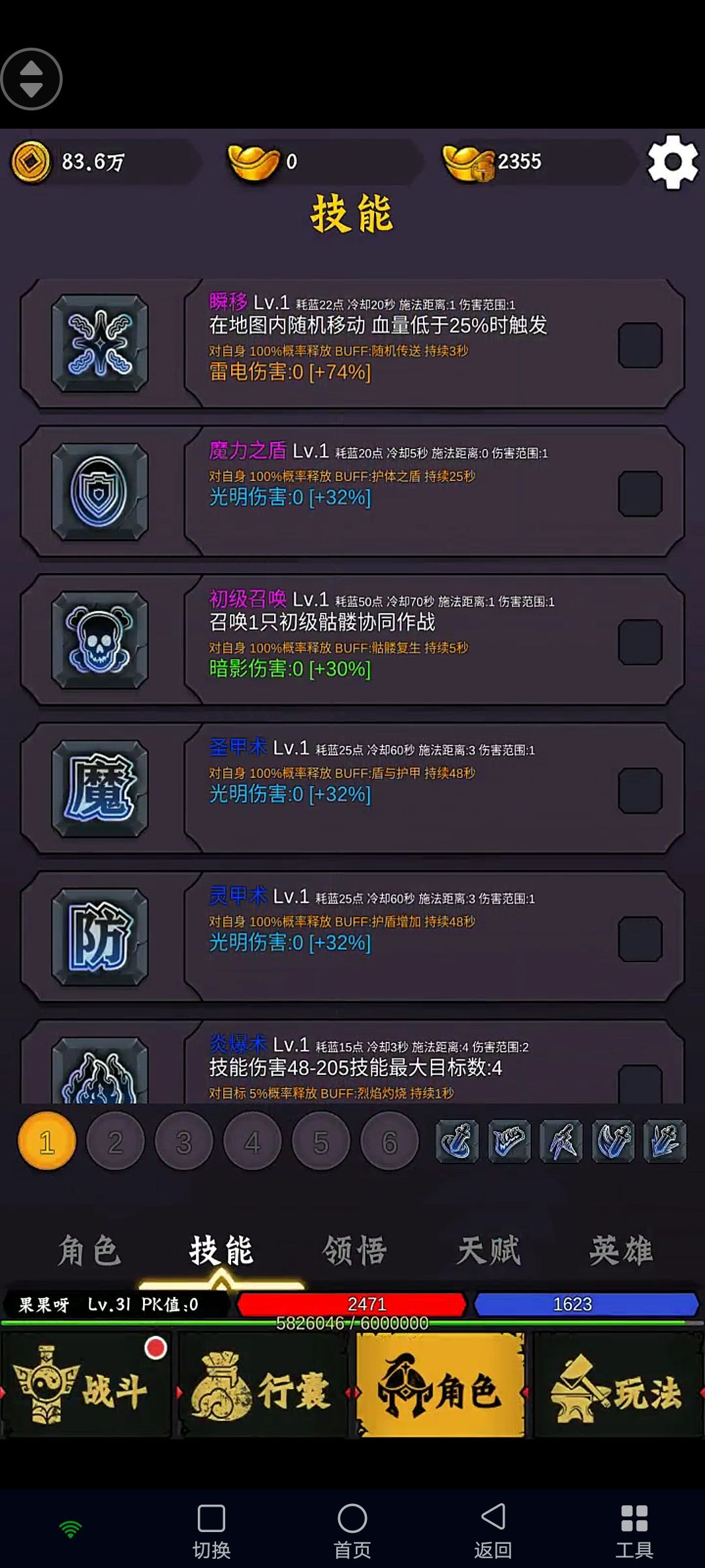 这是一个不能充值的肝帝传奇,一个28级的萌新随意写点经验给后来的肝帝们。 1,进游戏后,右下角玩法>福利>签到>开服七天领取新手武器>打开背包拖动一把武器放在另一把上合成,这把武器能用很久可以适当+幸运三四点。离线挂机在玩法>托管。技能到等级系统送。右上角看广告送福利。 2,点开角色>领悟>选择入静观心,这是每只怪的额外经验,前期很重要,后续可以选择修炼其他。 3,本人天赋如图,前期慎重决定,每个