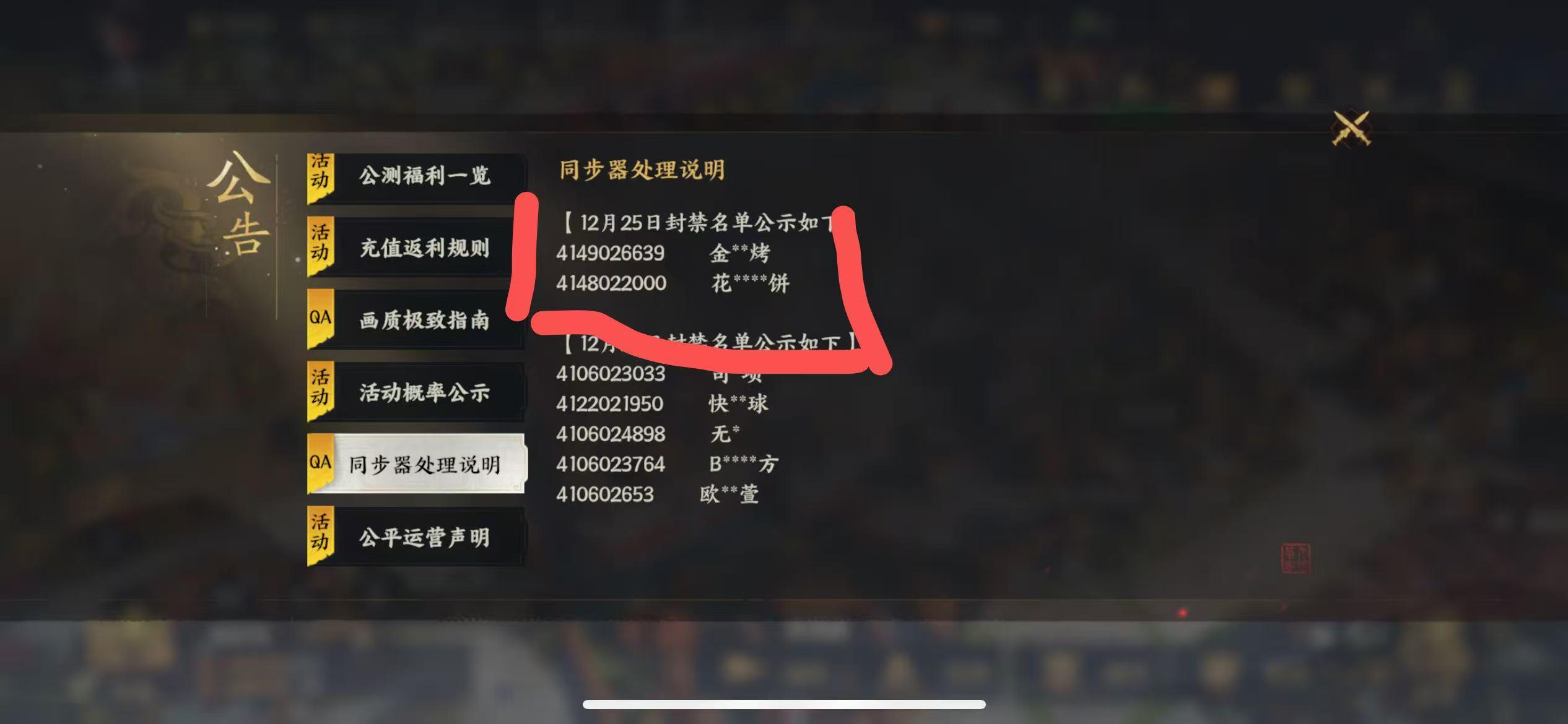 事情是这样,我们是s2-50区的,今晚25号最终决战的时候,发现对方的人异常的多,从早上11点到晚上9点都随时一两百队到处团战,本来大家只是怀疑,结果晚上游戏发公告说封了2个同步器的,好巧不巧还刚好是我们对面联盟的,随后对面联盟管理层就自爆要给被封的玩家重新买个号(前面一天他还在群里喊大家给他号,他们统一用同步器控号)。经过此事之后,我们再复盘看战报,全是1秒被几十队集火的,甚至还有0秒被融化的。
