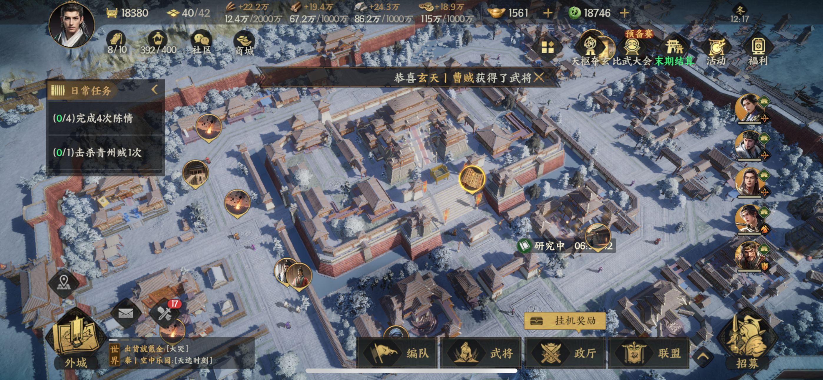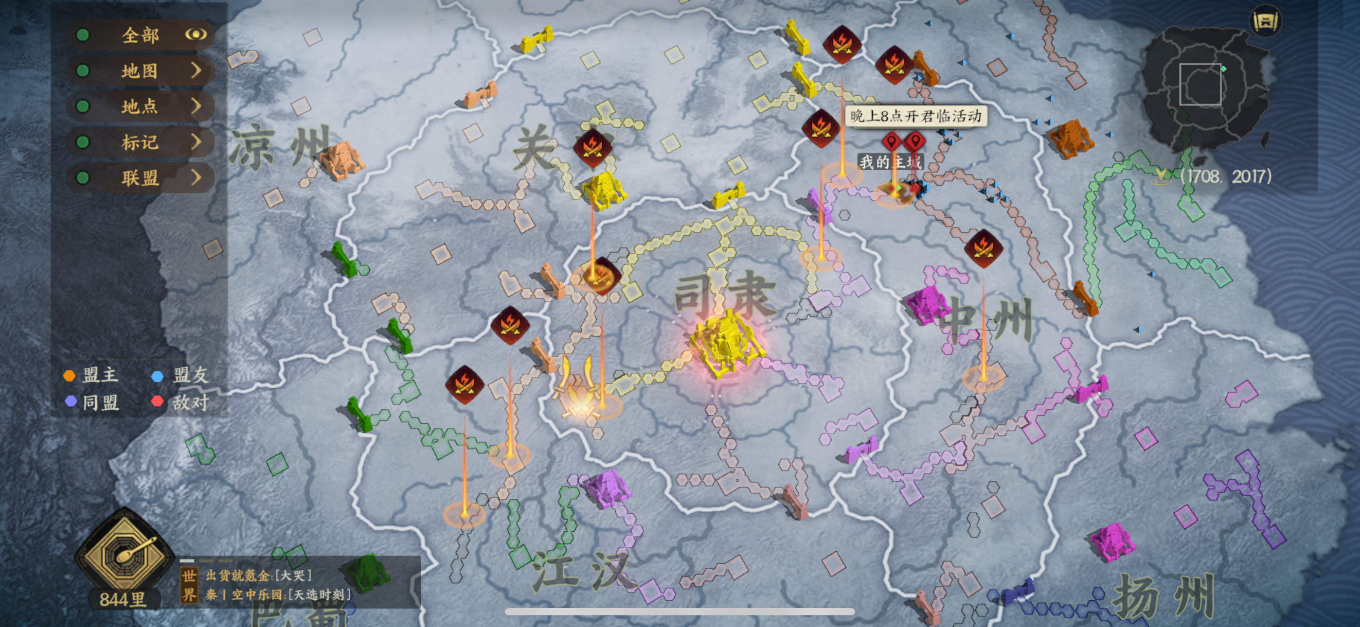 从烽火台到攻陷长安。昨天到今天。这里要先谢谢盟友醉梦山河。一个好的盟友,太重要了。从昨晚盟友的两次神兽救场,到早上的两面夹击,入关合围之势,击退敌盟,再到合作拿下长安,这策定九州这游戏确实挺好玩的,也有他的魅力。