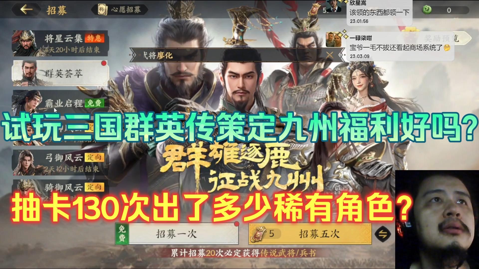 试玩三国群英传策定九州福利好吗?抽卡130次出了多少稀有角色?