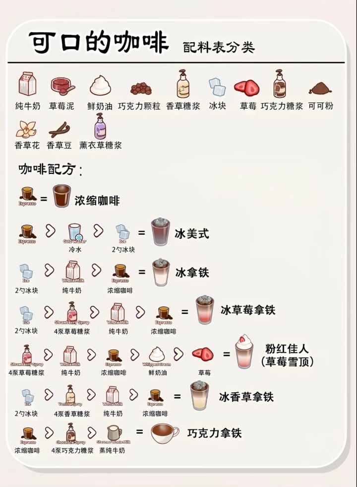 ☕️可口的咖啡 配方目录 随时更新