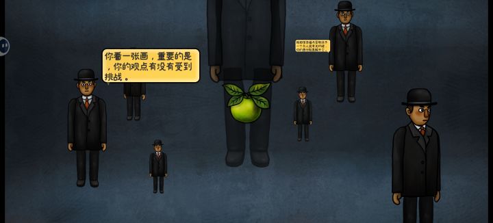 游戏流程不长,一个章节是20到30分钟,快一点做完了还能退款,但只要你吃当代艺术这一块这游戏就绝对惊艳。
