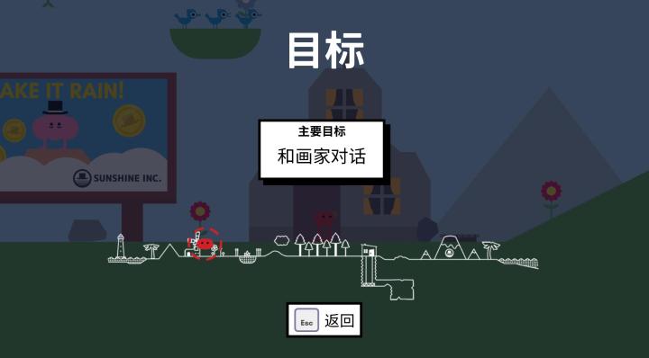 本作的单人主要玩法为解谜。解谜玩法需要玩家操纵主角小红球四处探索,接取任务,然后通过观察、思考以及与场景、NPC的互动来解开谜题,完成各种任务,从而推进剧情发展。在这个过程中,往往需要玩家操纵主角在场景中进行跳跃,寻找线索。