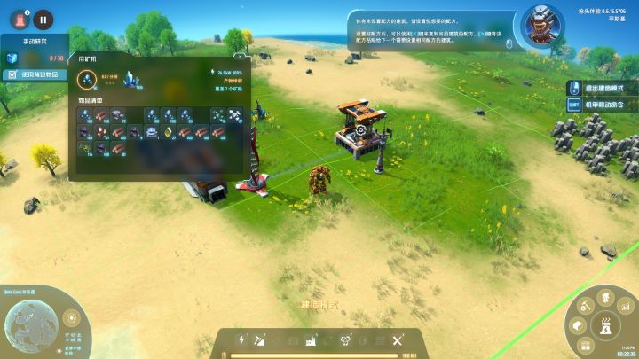 从游戏初期玩家只能依靠机甲伊卡洛斯手动采集资源开始,玩家的目标就是通过资源的采集来研发科技,建造更高级的设施,从而让采集与生产不断地变得更加高效、便捷,这是一个白手起家、从头开始“种地”“搞基建”的过程。资源的种类有很多种,一方面要采集足够的能源燃料保证机甲的动力,另一方面还要根据科技树的要求和设施的建造配方来有针对性地采集相应种类的资源。