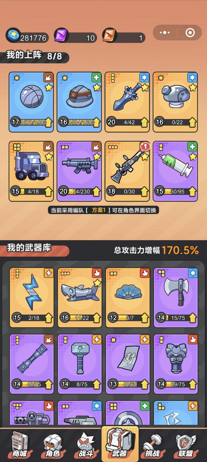 一、武器选择初期推荐 寒冰剑、冲锋枪是在游戏初期的优质选择。分别属于冰霜、物理系武器,分别拥有范围伤害、前排伤害能力,在面对前期成群出现的小怪时,能轻松清场,并且具备不俗的持续输出能力。若选择枪剑作为主武器,为了发挥元素联动效果,其余武器可尽量选择同属冰霜、物理系,如冰蘑菇、卡车等。二、前期伤害较高配置 篮球、冲锋枪、寒冰剑、针剂、盾牌或者狙击枪、卡车、帽子和冰蘑菇的配置十分适合中前期。冲锋