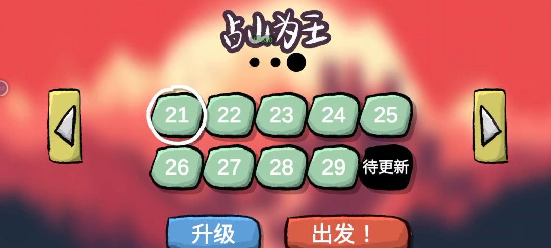 在更新的53个关卡里,如果想要不升级通关,最难的基本上就是第31关,我方初始兵力5,敌方15,并且敌方招募速度还更快。 但人机的套路基本类似,开局就会去占5人的小城,因此我方开局需先避其锋芒,往右下角发育,重点利用弓箭手的射程削弱兵力差,后续则是等敌方出兵去远处时,抓紧时间占领敌方人数少的城。 当然通过这关也需要运气成分,需要多次重开。至于有多个敌人的关卡,先坐山观虎斗,猥琐发育。如果开局位置被多