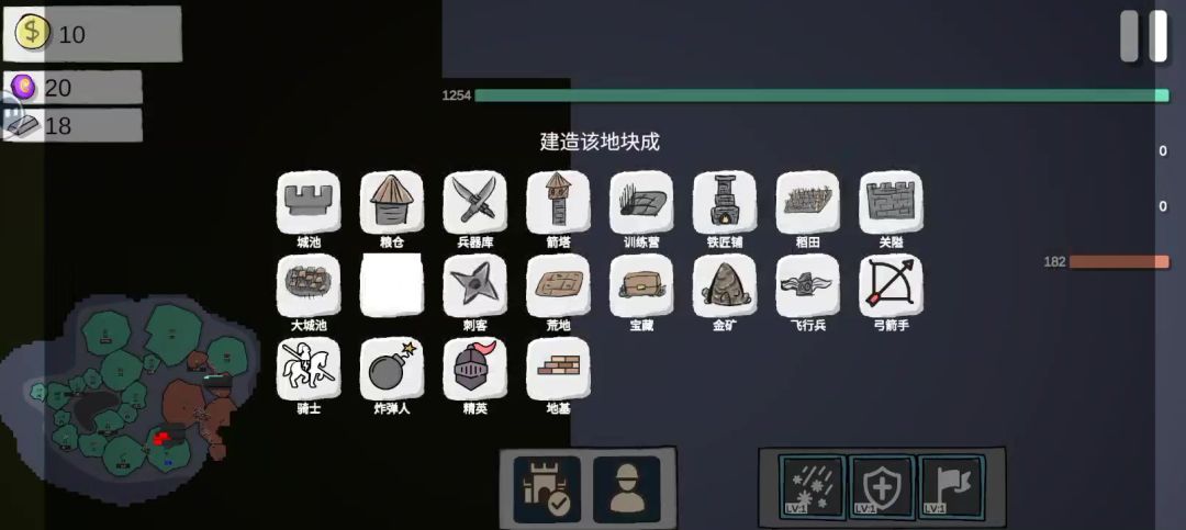 在更新的53个关卡里,如果想要不升级通关,最难的基本上就是第31关,我方初始兵力5,敌方15,并且敌方招募速度还更快。 但人机的套路基本类似,开局就会去占5人的小城,因此我方开局需先避其锋芒,往右下角发育,重点利用弓箭手的射程削弱兵力差,后续则是等敌方出兵去远处时,抓紧时间占领敌方人数少的城。 当然通过这关也需要运气成分,需要多次重开。至于有多个敌人的关卡,先坐山观虎斗,猥琐发育。如果开局位置被多