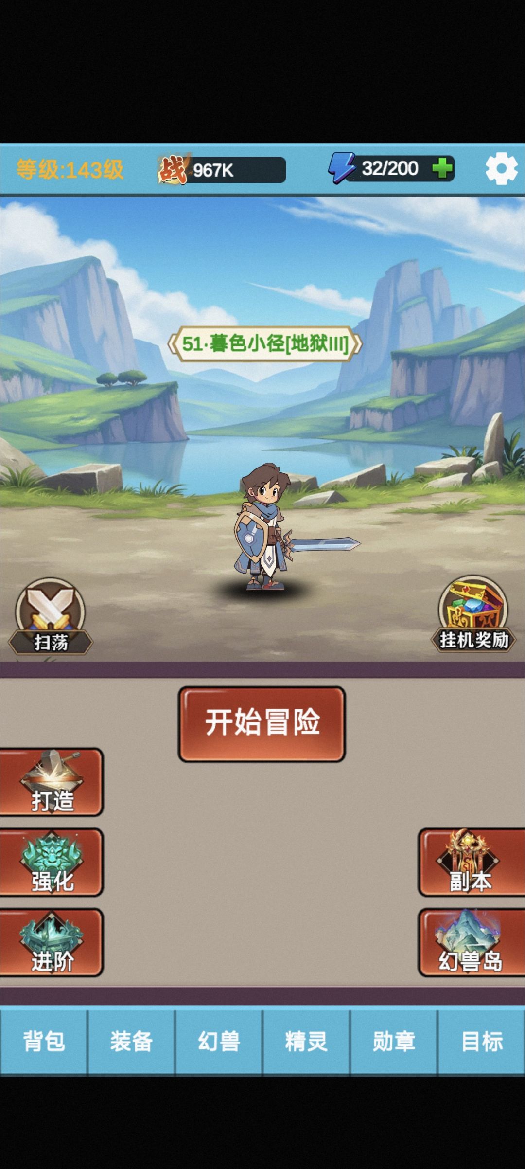 目前爬到51。个人觉得推图技能主要还是围绕绝技为主。选技能的时候首选绝技,怒气相关的技能,次选防御和生命。装备也是。幻兽技能是一级+2%,幻兽岛可以无限刷广告,所以存够200水晶只抓红色的。幻兽技能尽量选闪避,没有闪避黄色的就行。必须要上水泽仙子,因为冰冻非常好用。勋章顶级是红色,其他都可以分解。#勇者冒险之旅2