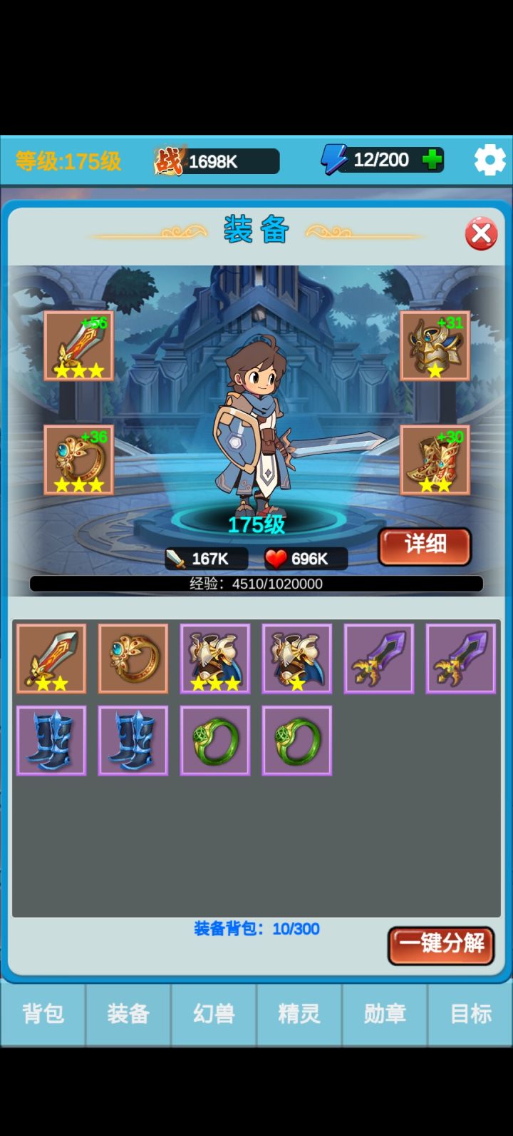 目前爬到51。个人觉得推图技能主要还是围绕绝技为主。选技能的时候首选绝技,怒气相关的技能,次选防御和生命。装备也是。幻兽技能是一级+2%,幻兽岛可以无限刷广告,所以存够200水晶只抓红色的。幻兽技能尽量选闪避,没有闪避黄色的就行。必须要上水泽仙子,因为冰冻非常好用。勋章顶级是红色,其他都可以分解。#勇者冒险之旅2