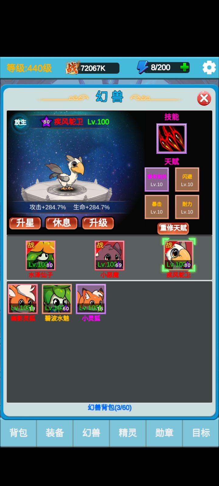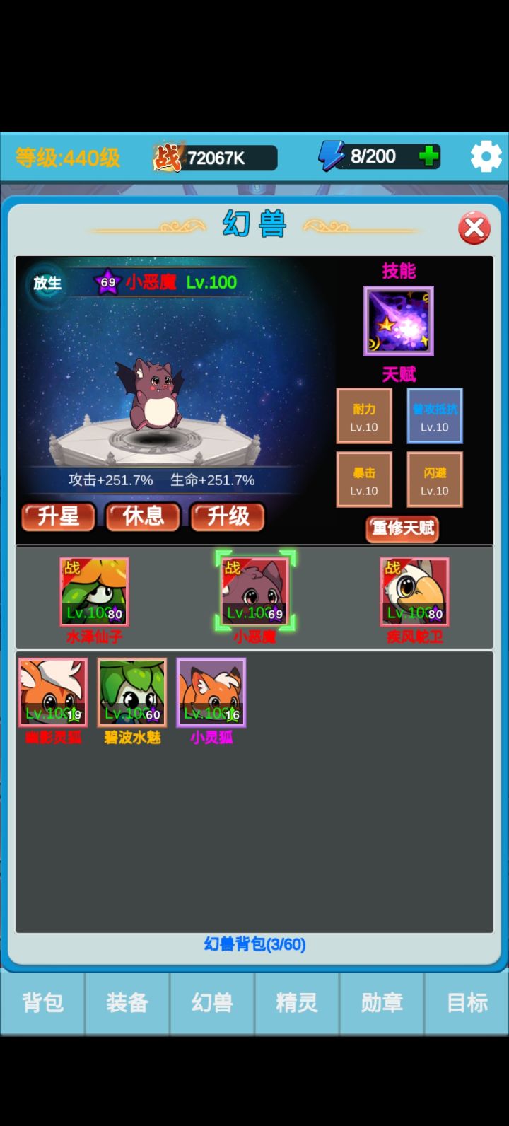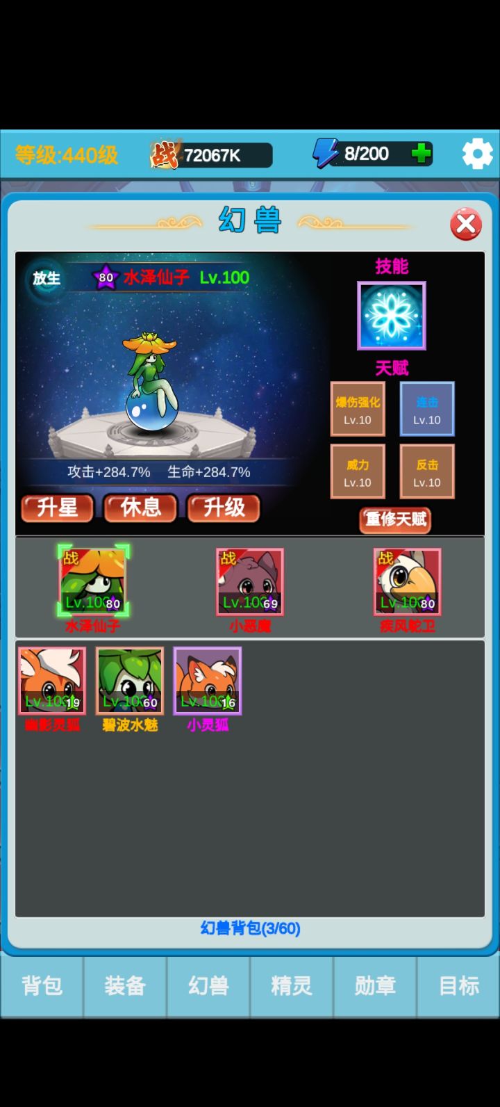 目前爬到51。个人觉得推图技能主要还是围绕绝技为主。选技能的时候首选绝技,怒气相关的技能,次选防御和生命。装备也是。幻兽技能是一级+2%,幻兽岛可以无限刷广告,所以存够200水晶只抓红色的。幻兽技能尽量选闪避,没有闪避黄色的就行。必须要上水泽仙子,因为冰冻非常好用。勋章顶级是红色,其他都可以分解。#勇者冒险之旅2