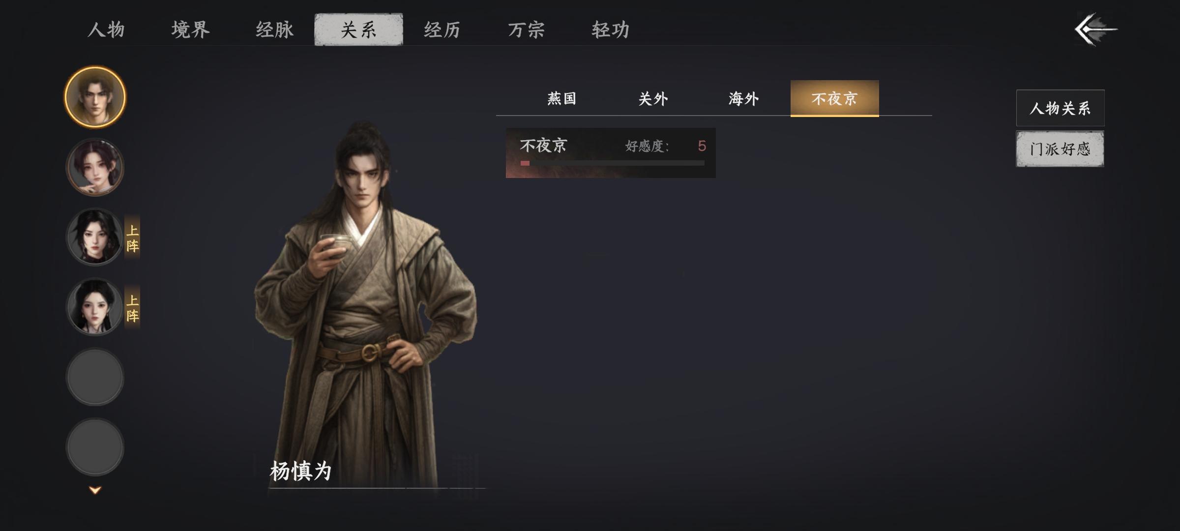 有人有人知道是什么情况?吗,我做任务贡献了500多了。原本有个绝剑门也退了它显示我是外门弟子,但我上面是无门派,而且也无法晋升。宗门好感度基本升不了。。