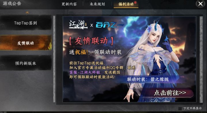 #送祝福 送祝福,领《下一站江湖Ⅱ》和《百分之一》联动时装”。 来自TapTap[ID:69427720 羽田]