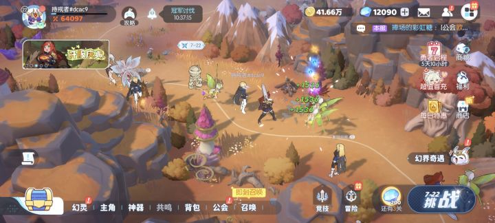 往左看,是扫荡,幻灵,主角,神器,共鸣,背包,公会,召唤。