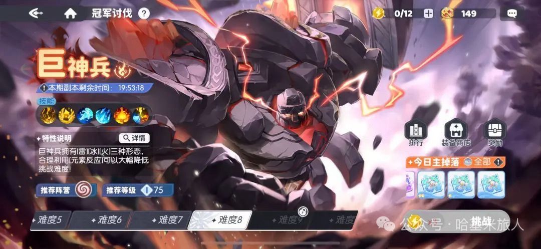 玩法介绍 基础信息:核心PVE玩法,产出装备的主要途径 参与方式:每天免费3次,可通过钻石购买或挑战道具额外增加次数 玩法刷新:BOSS和掉落的装备部位都是每日刷新 玩法产出:主要是装备,附带产出可兑换装备的锻造纪念币,首通还会给钻石 挑战策略 「冠军讨伐每个BOSS有20个难度的关卡,就目前的体验来看,难度1~难度10都是比较简单的,之后难度才会逐渐提升。本阵容推荐主要针对遇到难度压力后的阶段,