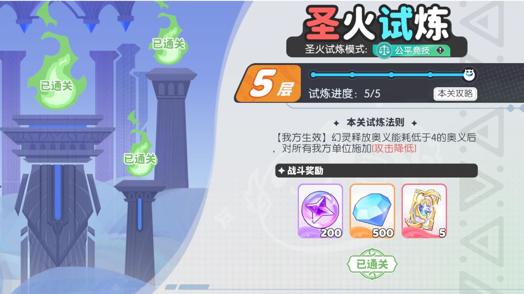 大家好~ 从开服至今已过去几天,相信大家对《龙魂旅人》的玩法已有初步了解。但有一个活动可能是所有人的最爱——没错,就是圣火试炼! 因为这里真正比拼的是战术策略,而非氪金力度。圣火试炼规则解析角色限制 幻灵:等级、星级、装备统一固定。其他系统:图鉴、职业命途、誓约、神器属性均不生效。 巨龙:仅适用星级、龙巢和龙语魔法技能(主角品德不生效)。 玩法结构5层试炼: 每层分为5个进度,通关进度可获得钻石奖