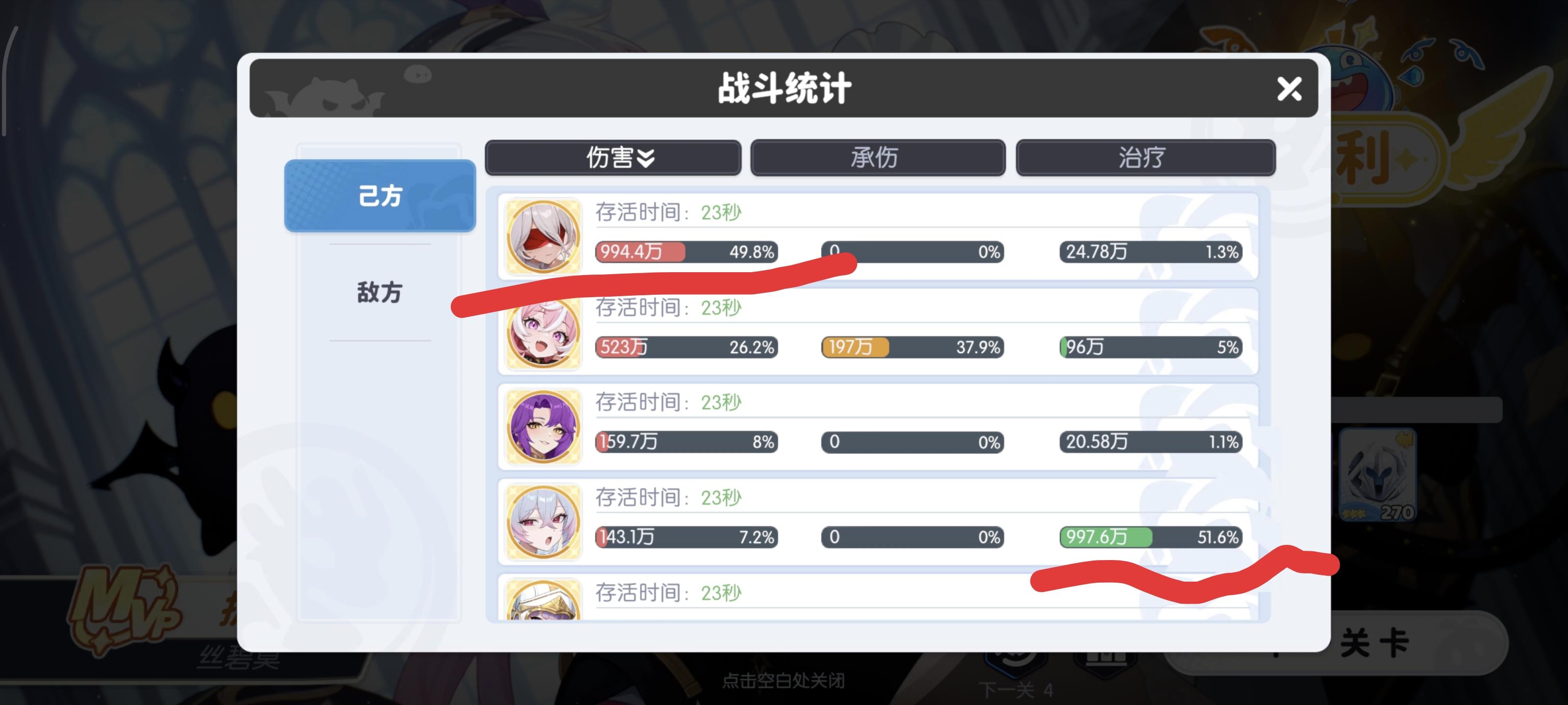 有了专武的鸦鸦,伤害还是可观的,她的减疗效果也不错。