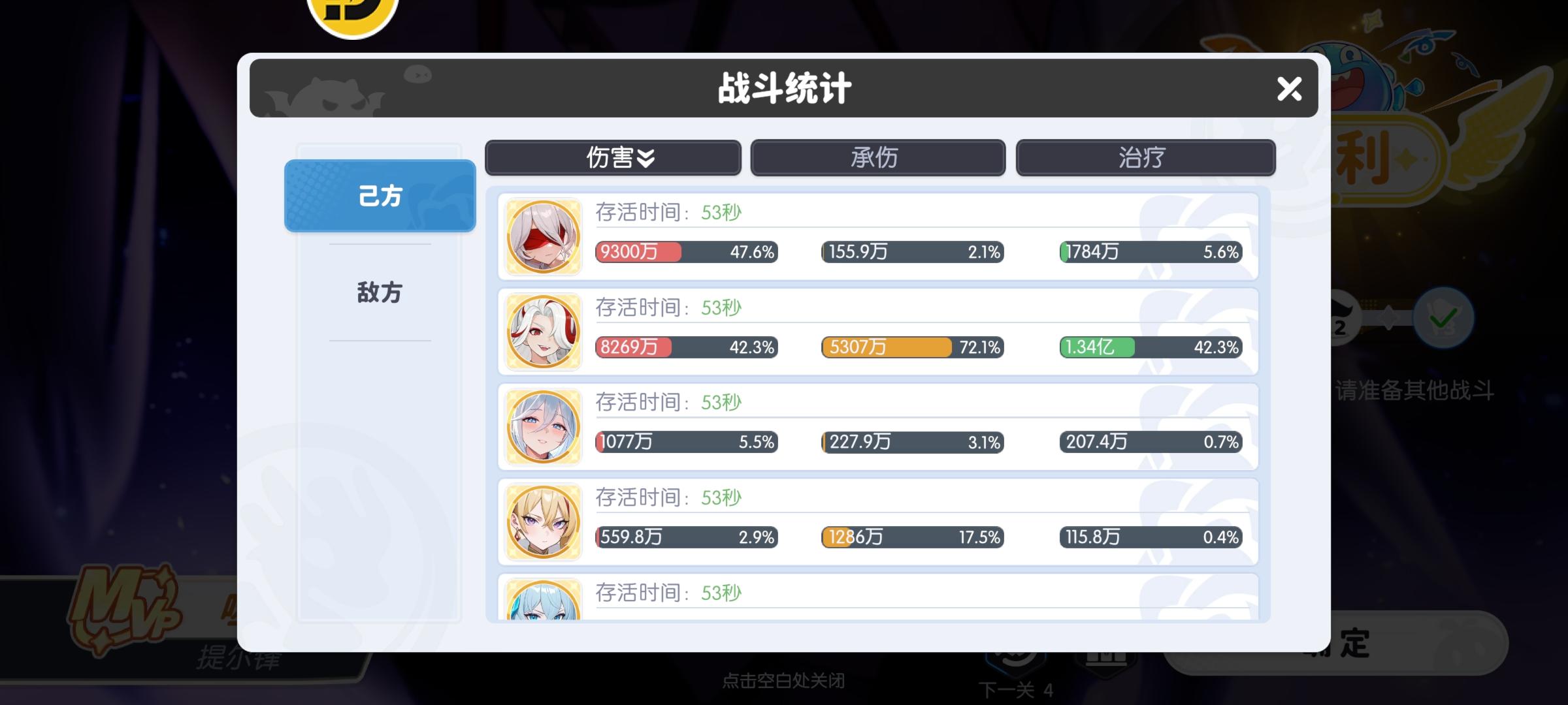 有了专武的鸦鸦,伤害还是可观的,她的减疗效果也不错。