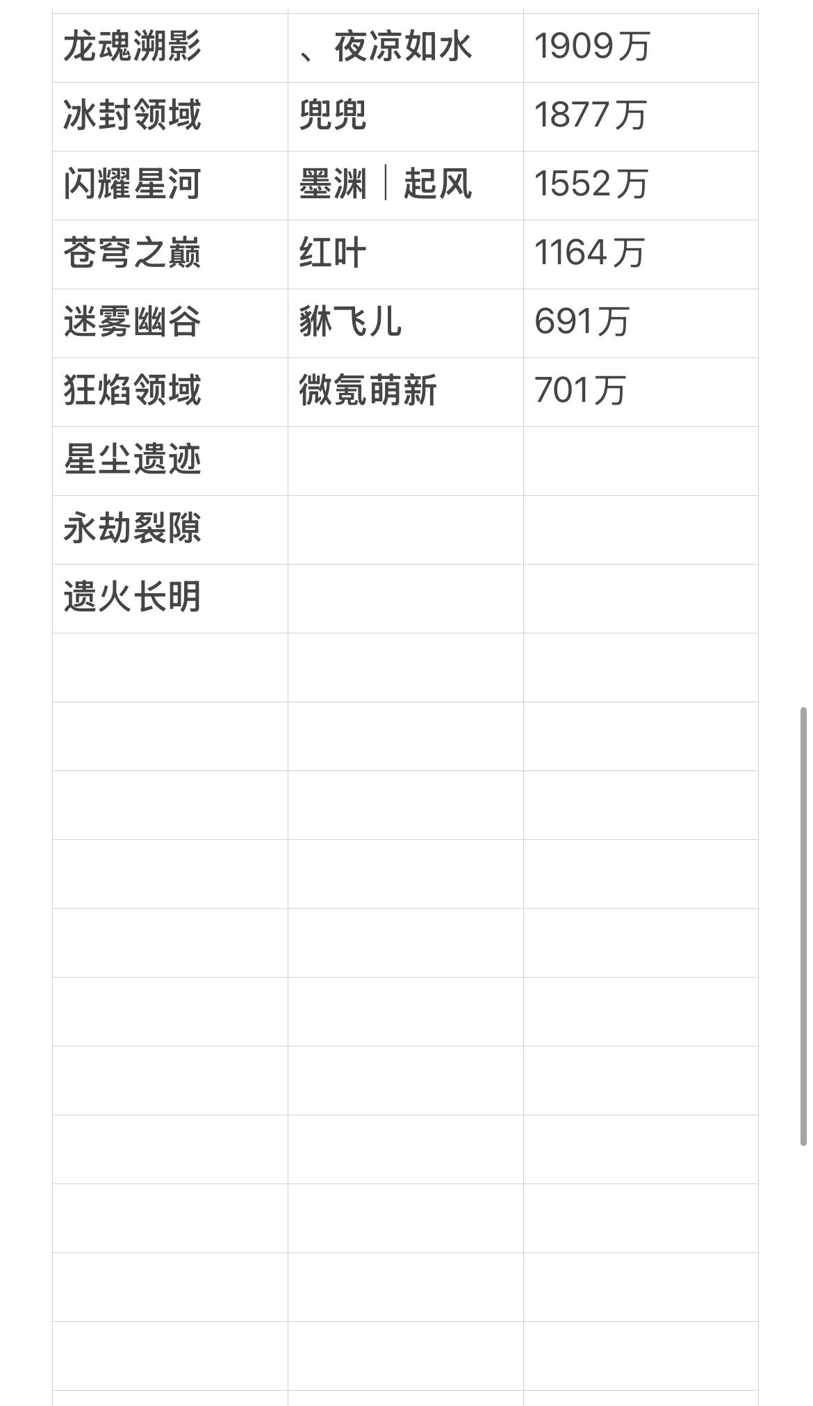 龙魂旅人国服各战区顶尖战力统计1.25