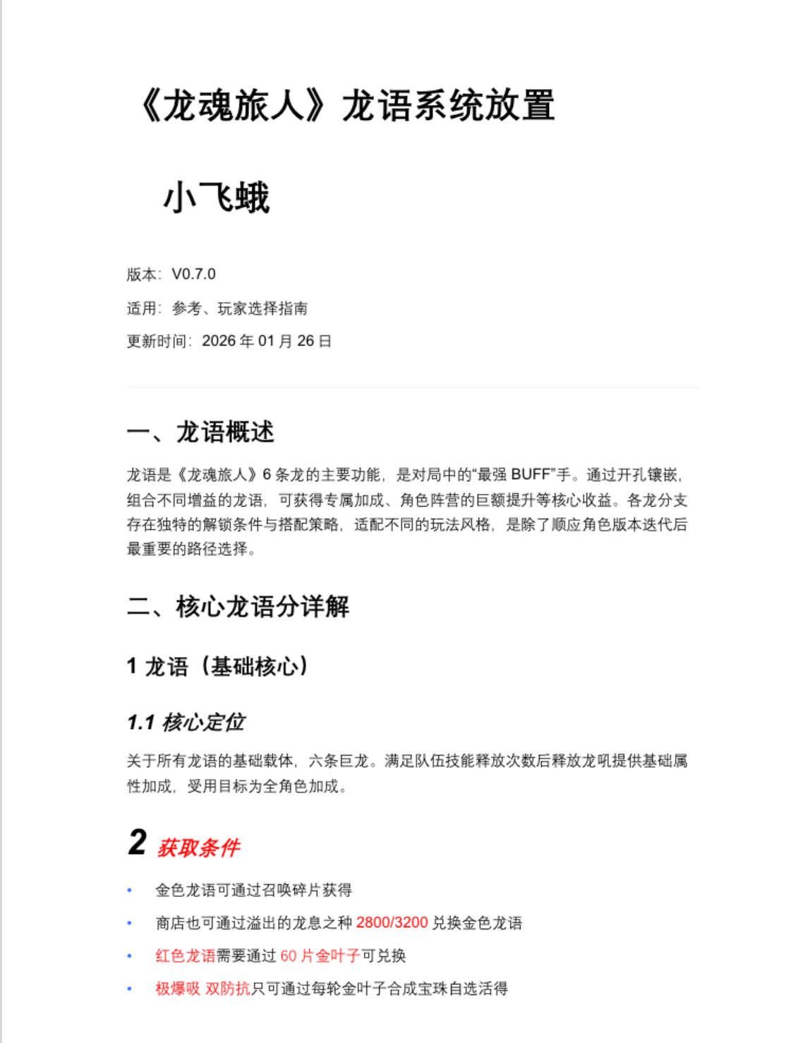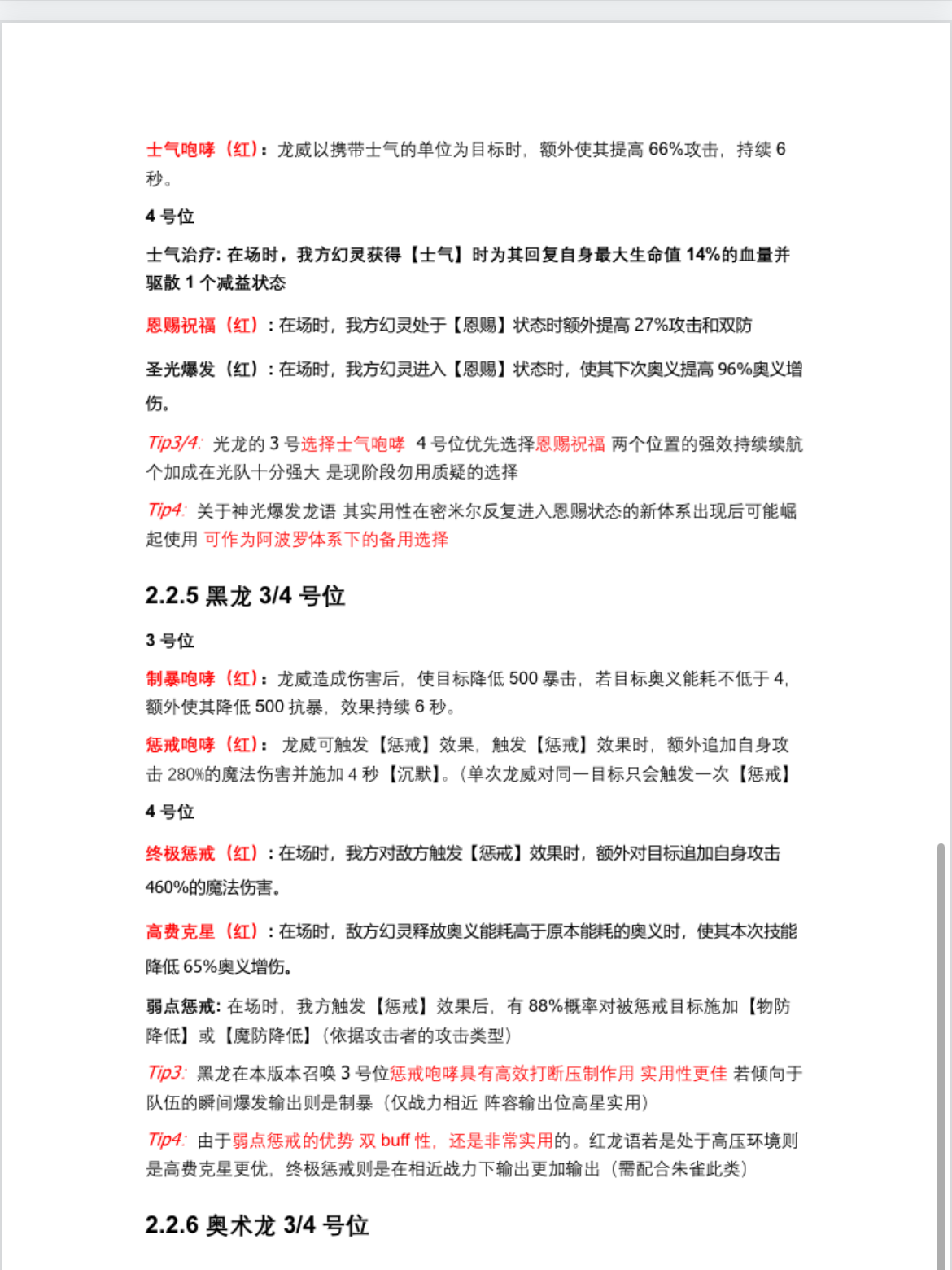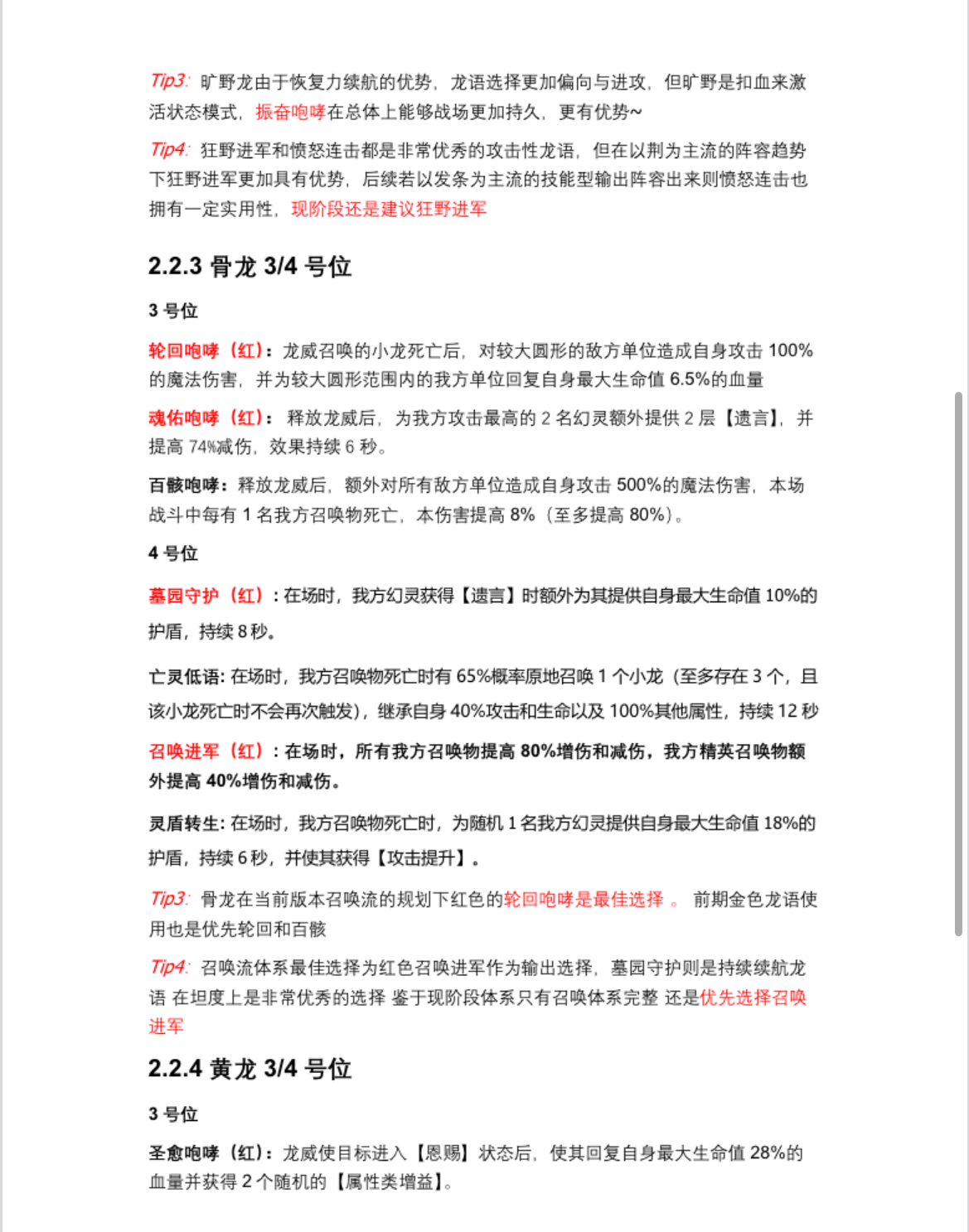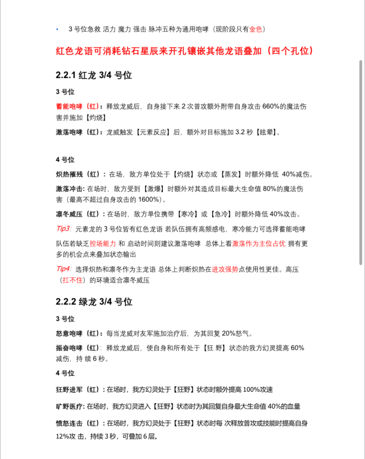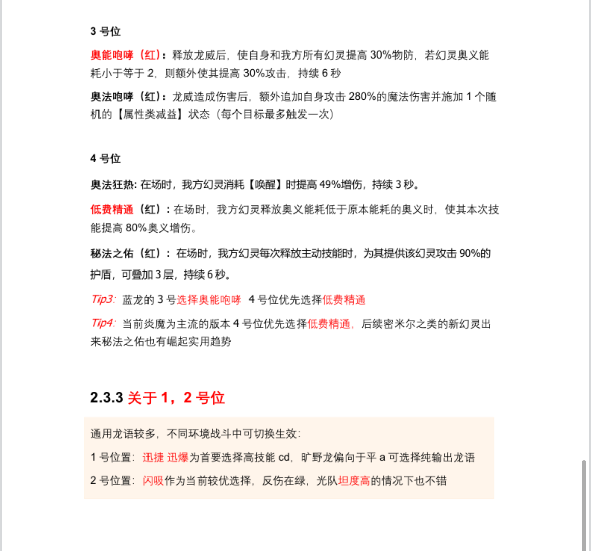 关于各龙的龙语择取建议