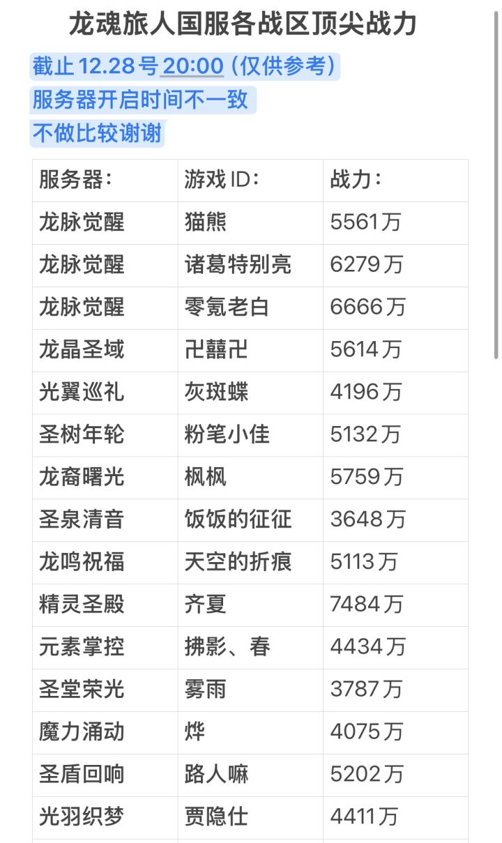 龙魂旅人国服各战区顶尖战力