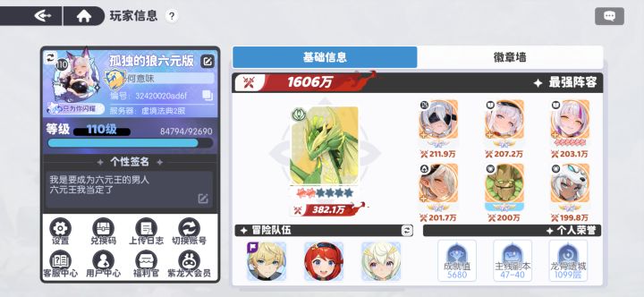 今天第157天 距离上次发贴过了20天提升了200多万 战力来到1606万 今天一天狠狠提升了五十万战力 因为来了新魔物外加宝库钻石也被消磨殆尽所剩无几 推塔来到了1100层 卡大哈 顺便分享一下我的阵容吧 给兄弟们参考参考 用老百姓蓝绿阵容是如何推塔的 我这个推塔进度在六元档里面应该是还可以的 另外就是成功拿下了时之隙前二十 跨服圣王前32 星期六结束马上就能拿第二个跨服魔物 月神两天后红五 狐