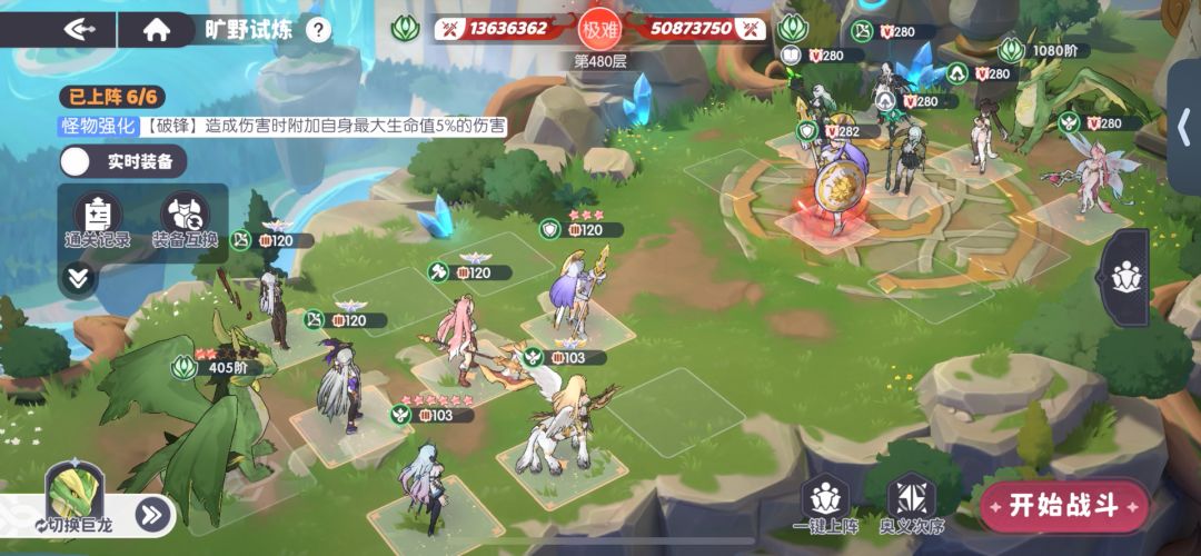 绿队比较轻松 荆单C带红一洛基封印特技比较好打 接下来1200层以上都是爱神和战神了 打着累。