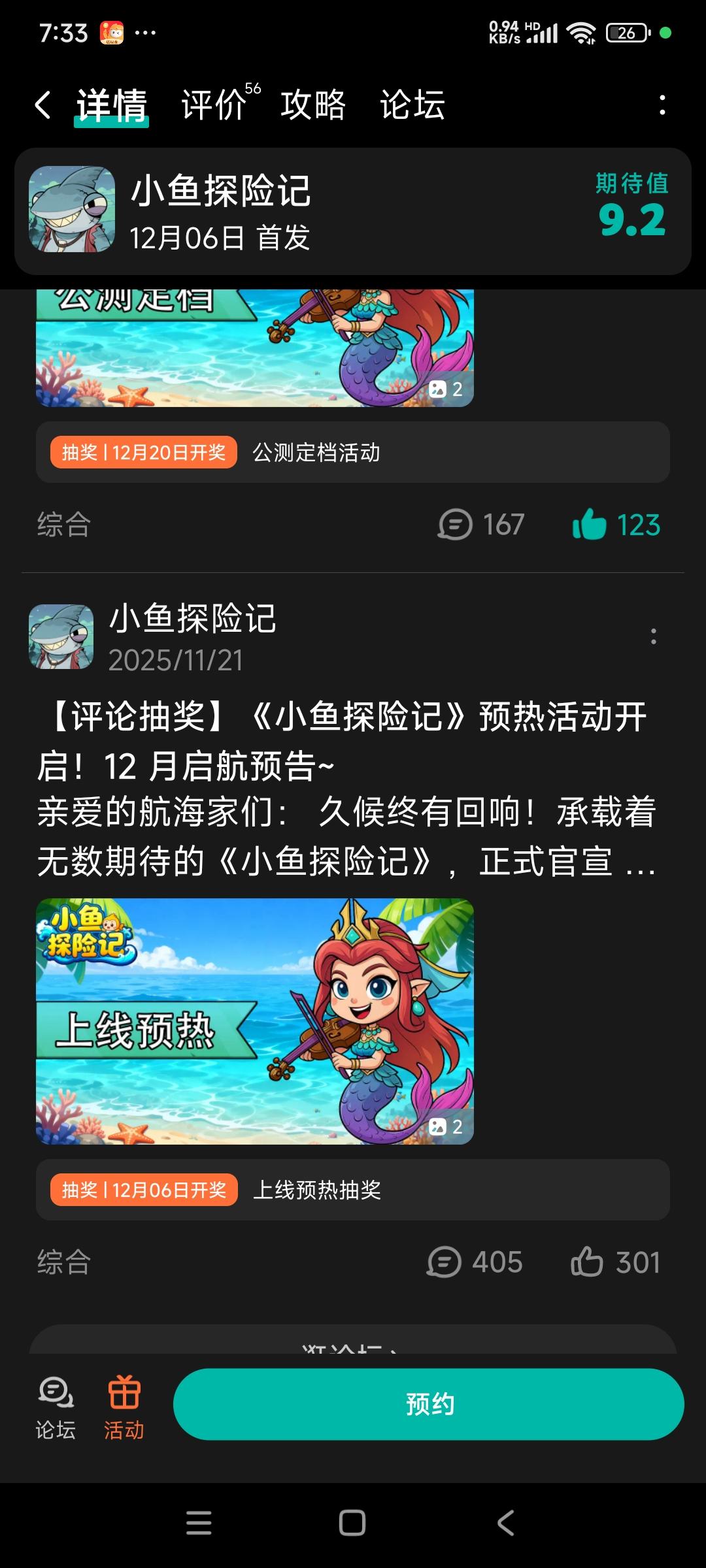 亲爱的航海家们:久候终有回响!承载着无数期待的《小鱼探险记》,正式官宣 ——12 月即将上线!从测试期的打磨优化,到版号获批后的精心筹备,我们始终记得每一位探险家的陪伴与期待。现在,深海之门已悄然敞开,奇趣生物、神秘宝藏、治愈系水下场景正静待解锁,预热福利活动同步启动,提前为你的探险之旅蓄力!✦首测结束福利:即日起至2025年12月7日00:00,成功「预约」本游戏后参与本帖「评论」,系统将
