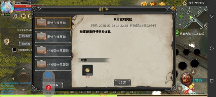 说了白嫖单号最好选择战士,总有人头铁要玩别的,那我就开一个法师开局的吧建好号第一步,把图1的新手码先用上(注意:后两个码分别是小天使和小恶魔,尽量别一次性用了,一个能用3天呢,都用了也没事,别从邮件里领出来就不会计算使用时间)。码1是特权卡(特权卡用于自动出售,远程买药,远程仓库,还能去特权线打罗币)。这会可以按自己喜欢,在右上角地图边上设置一下挂机设置,背包里设置一下自动出售设