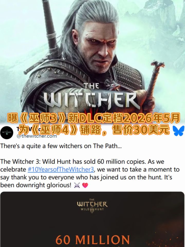 #主机单机 #资讯评论员 据波兰投资机构诺布尔证券分析师Mateusz Chrzanowski透露,CD Projekt Red或于2026年5月推出《巫师3:狂猎》的付费DLC,定价30美元,预计销量达1100万份。该DLC由合作工作室Fool’s Theory开发( 曾参与《巫师》初代重制 ) ,剧情以希里为核心,被业内视为衔接《巫师4》( 代号Polaris ) 的叙事纽带。尽管CDPR