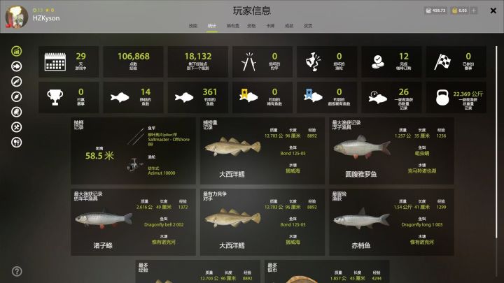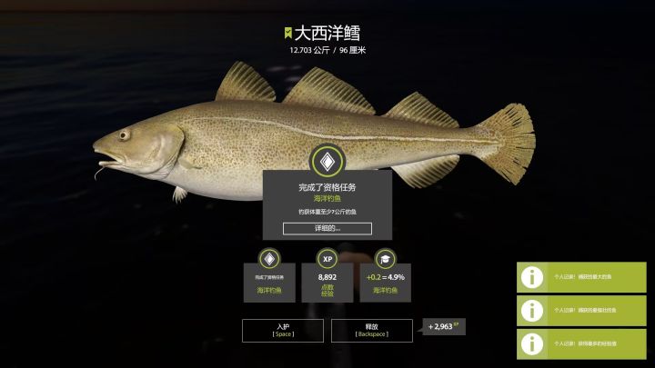 这游戏通过划分捕获的鱼的重量将鱼分为了未达标鱼、达标鱼、稀有鱼和超级稀有鱼,就是所谓的上星上蓝冠。鱼种也分为普通鱼种、罕见鱼种(紫标)和极其罕见鱼种(粉标)。玩这游戏目标就是捕获奖杯鱼(即上星上蓝),当你不甘心简单钓钓鱼放松一下,而是想要获得更多奖杯鱼🏆的时候,你就掉进了一个天坑(即蹲星),你会发现这游戏根本就没鱼😣,蹲星的开始就是坐牢的开始!想要玩的舒服放松,就不要太追求奖杯鱼,随缘就好。
