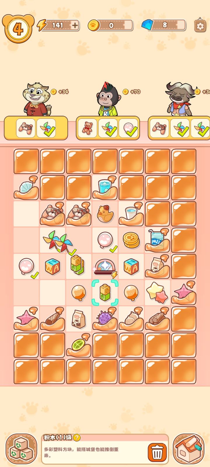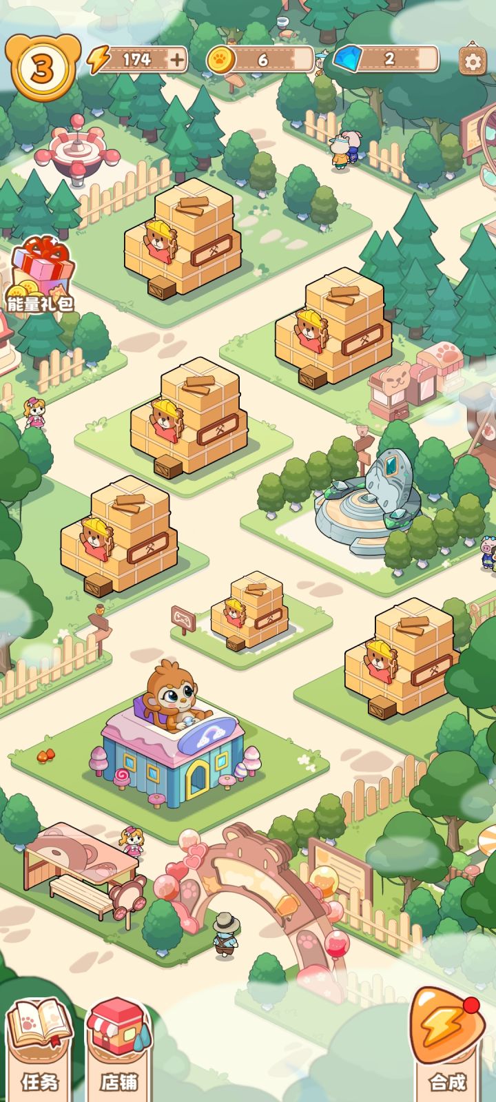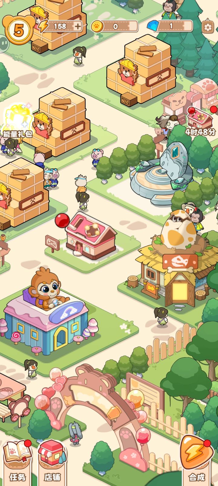 合成任务是修建游乐园的主要资源产出,装修项目不可选,资源够了点即可。剧情等内容由装修进行触发,有简单的剧情效果。