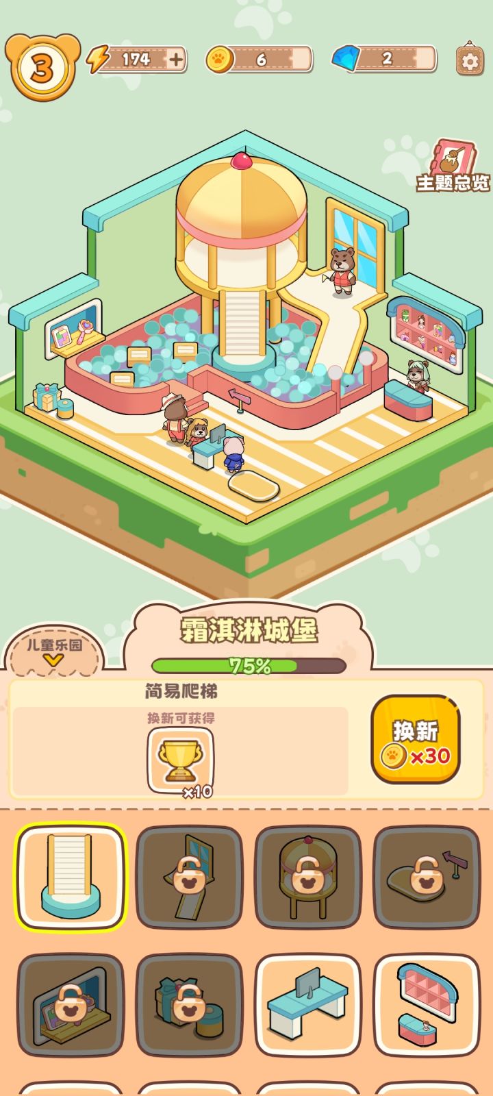 最初的店面装修全部完成,才会开启下一个店面的装修,以此类推,直至将整个游乐园装修完成,游戏内容深度也就是所有店面。由于体力和产出CD限制,要全部解锁恐怕要费一段时间。