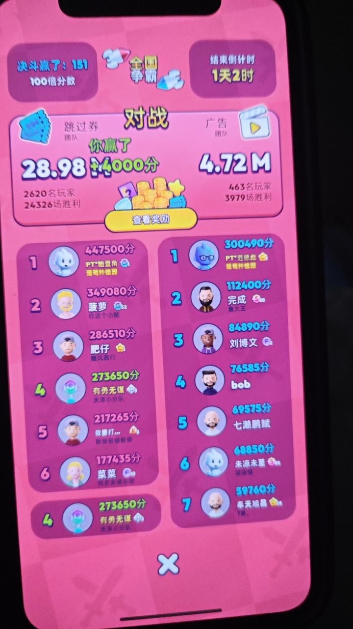 每次的全国争霸都这样,我的分比他们高,但是排名就在他们下面,已经好几次了,最后结算奖励时也不行,明明我的积分能进前10,但是他们比我分低,排名倒比我高。