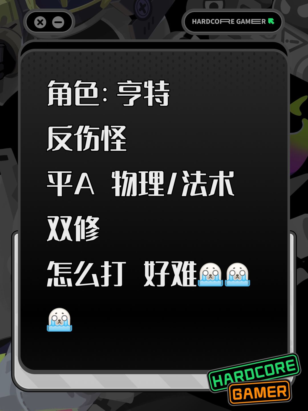 角色:亨特 反伤怪 平A 物理/法术 双修 怎么打 好难[表情_豹哭][表情_豹哭][表情_豹哭]