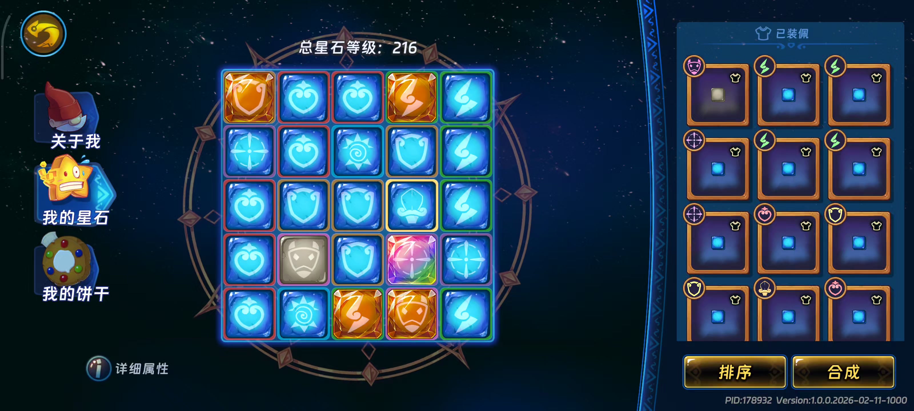 不容易啊,凑齐刷1-1真是舒服了。有些词条还不满意但是是没有重制了,日后慢慢转吧,狠心一把拿了5万金币左右抽星石。有些没变彩的只能用星砾转了。个人心得,在合星石时(主词条对了副词条不对的时候,有人对主词条看法不一样就不提那个好了“例如攻击力、物伤、法伤”,主要你自己适合就行啦)合到11级时先去重制副词条不对的属性(因为有机率变彩,可以剩点星砾)个人会有个小习惯囤玩具币(反复刷1-1)100左