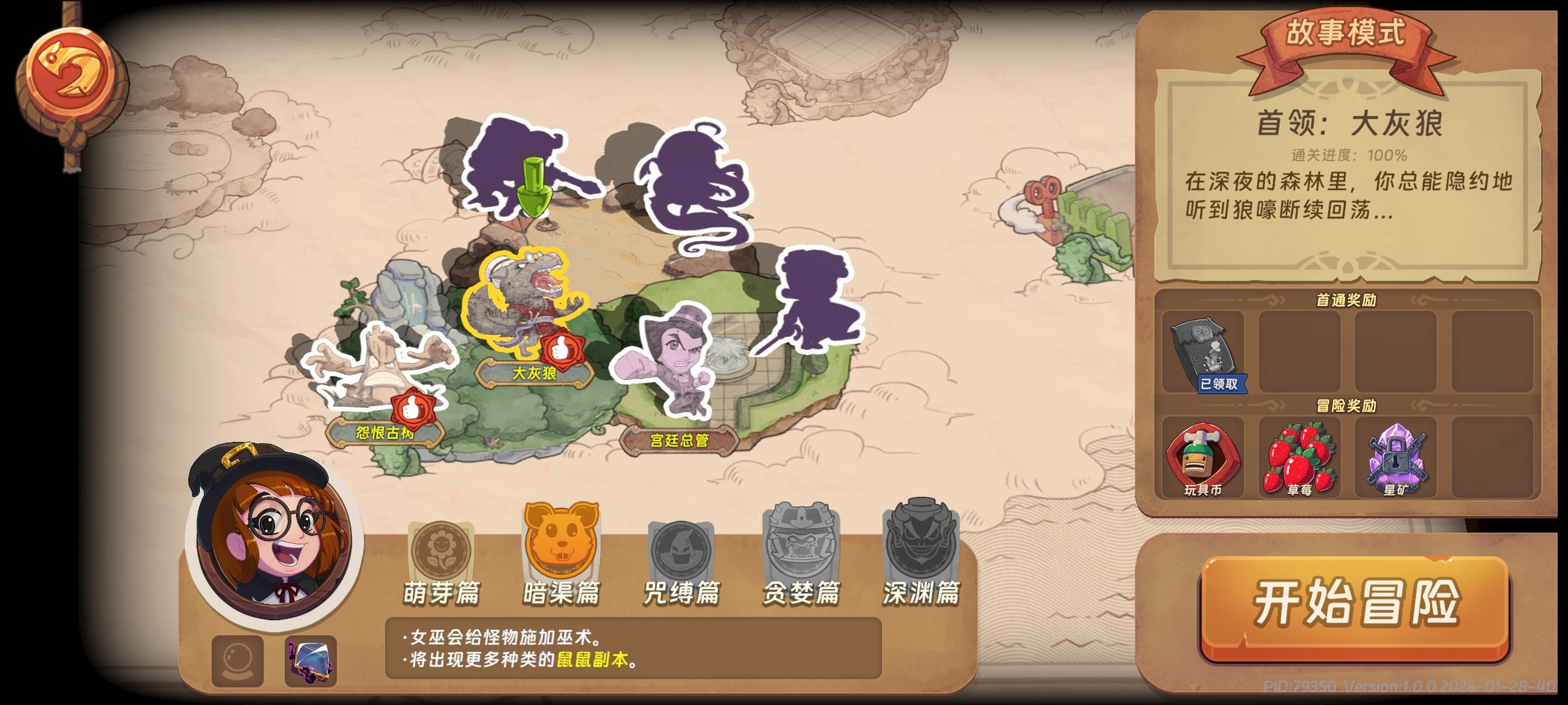 1.神秘果实:2-2大灰狼关卡通关boss处中间果子2.奇怪的蛋:任意副本休息站右侧大鹅(点击)3.镂空木块:点击木鱼4.兽皮鸭子:角色彬的这只大黄鸭