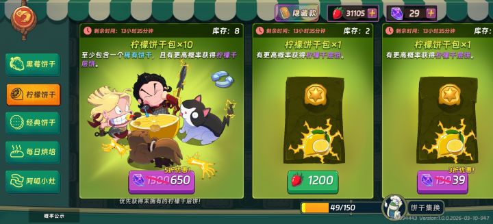 话说,未来如果更新主题饼干,是会给各个角色补齐现有主题的饼干,还是会直接出新主题饼干?比如肥椒现在有柠檬饼干,未来会不会给他补一个黑霉饼干?或者直接出新主题饼干,按照现实里的瑞士糖、夹心饼干等零食的口味,我想到一些,比如香橙饼干包、草莓饼干包、蜜桃饼干包,菠萝饼干包、青苹果饼干包。