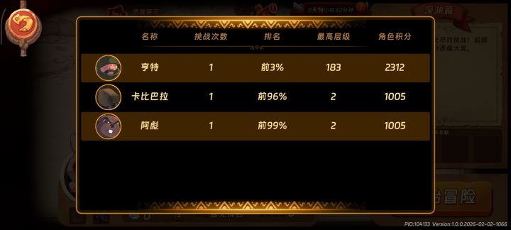 反正都是100%之内,建议3个角色都打完第一层第二层右上角回城结算,2分钟完成