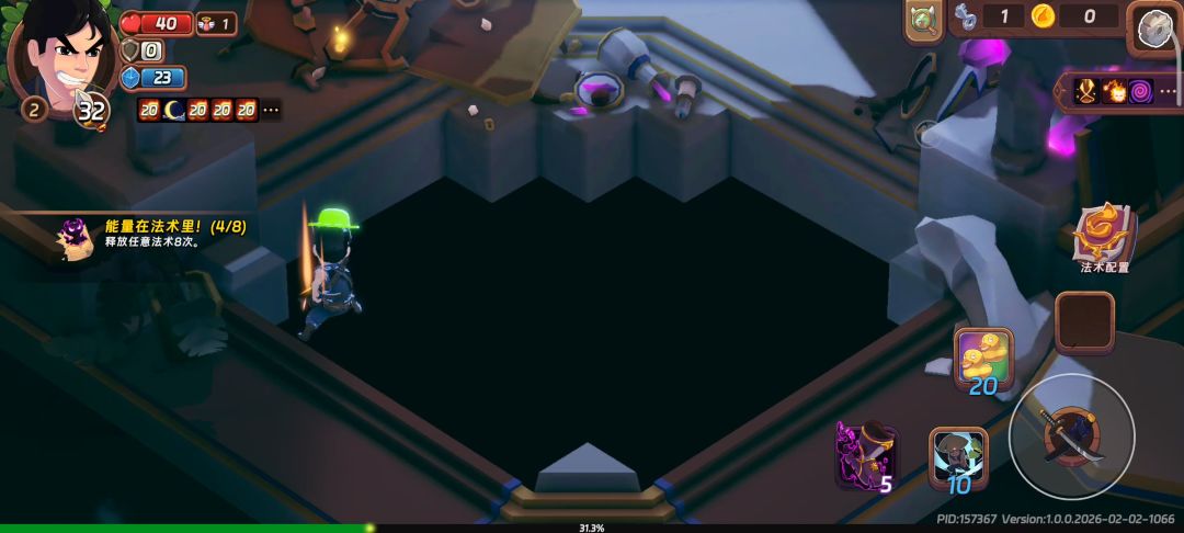 2月3号开始玩的,突然在2月6号性情大发玩了23.5个小时,想着打一下深渊,看看亨特上限在哪里,结果打到140层左右突然暴毙,然后去反思死因,最后得出结论是被可恶的跳跳虎踩死了,身板脆这个没办法,但是今天我突然在我的占卜里面看见了一个东西,就是视频里面的狮心护盾,效果对脆皮亨特来说非常好,不用担心被突然融化,并且在拿了魔法转物理的情况下,还有印记在法术造成伤害时提升1%魔法伤害,战斗力没有上限可以
