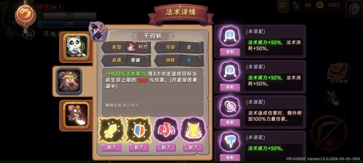 能爬多少层取决于你手机有多少电你有多少时间。运气好遇见技能打孔结果手滑只给千钧斩开了两孔就点没了,正常技能不打孔也一样,懒师傅自带技能挂20%cd,千钧斩带100%伤害加成,点金手(遇见10金币捐钱一次那个捐个五百金币后面就能学点金手了)带不能主动释放50%概率普攻释放,冰冻就是正常带7%概率普攻触发。进魔女和boss就直接手动放一次冰冻剩下就是平a了。