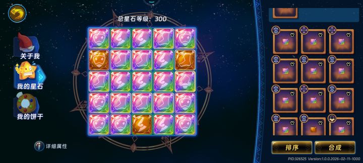 不容易啊,凑齐刷1-1真是舒服了。有些词条还不满意但是是没有重制了,日后慢慢转吧,狠心一把拿了5万金币左右抽星石。有些没变彩的只能用星砾转了。个人心得,在合星石时(主词条对了副词条不对的时候,有人对主词条看法不一样就不提那个好了“例如攻击力、物伤、法伤”,主要你自己适合就行啦)合到11级时先去重制副词条不对的属性(因为有机率变彩,可以剩点星砾)个人会有个小习惯囤玩具币(反复刷1-1)100左