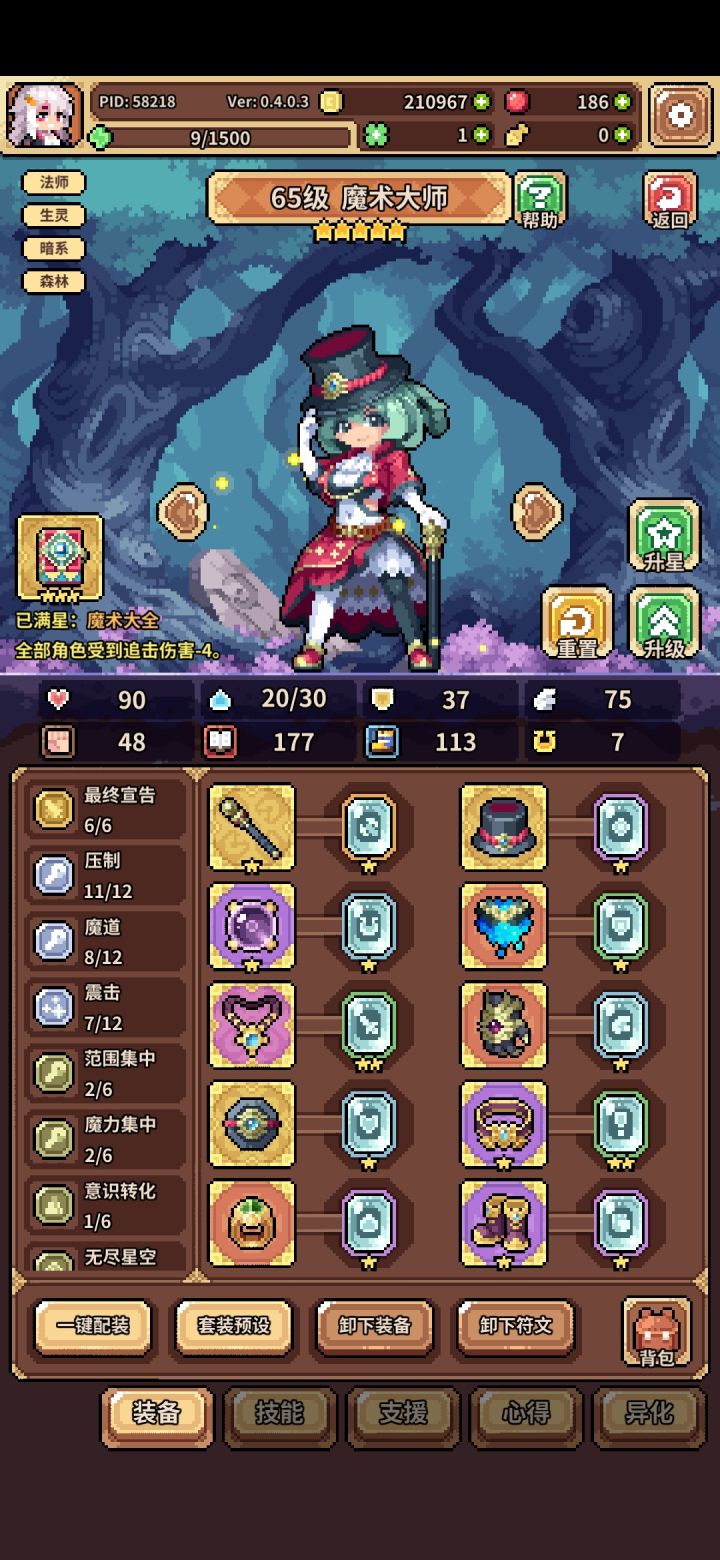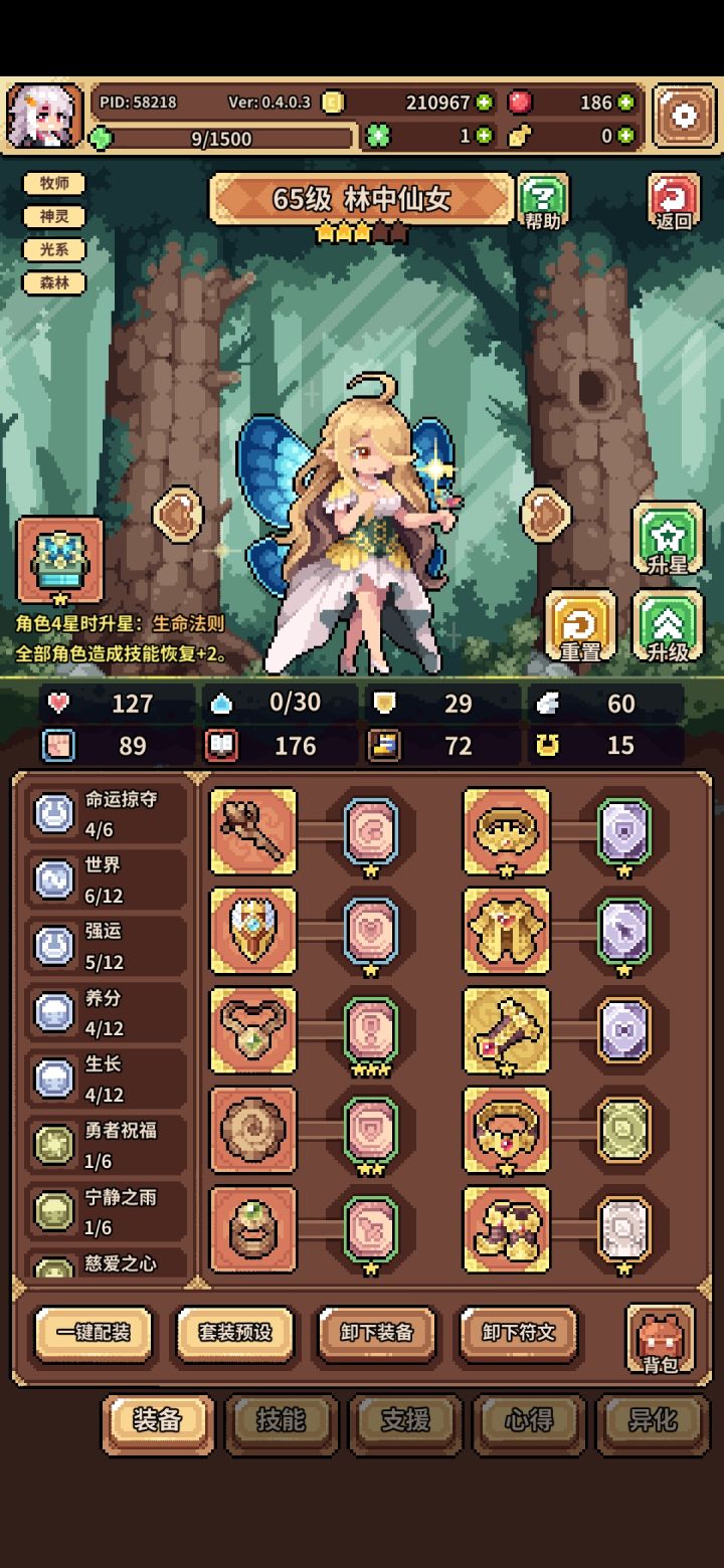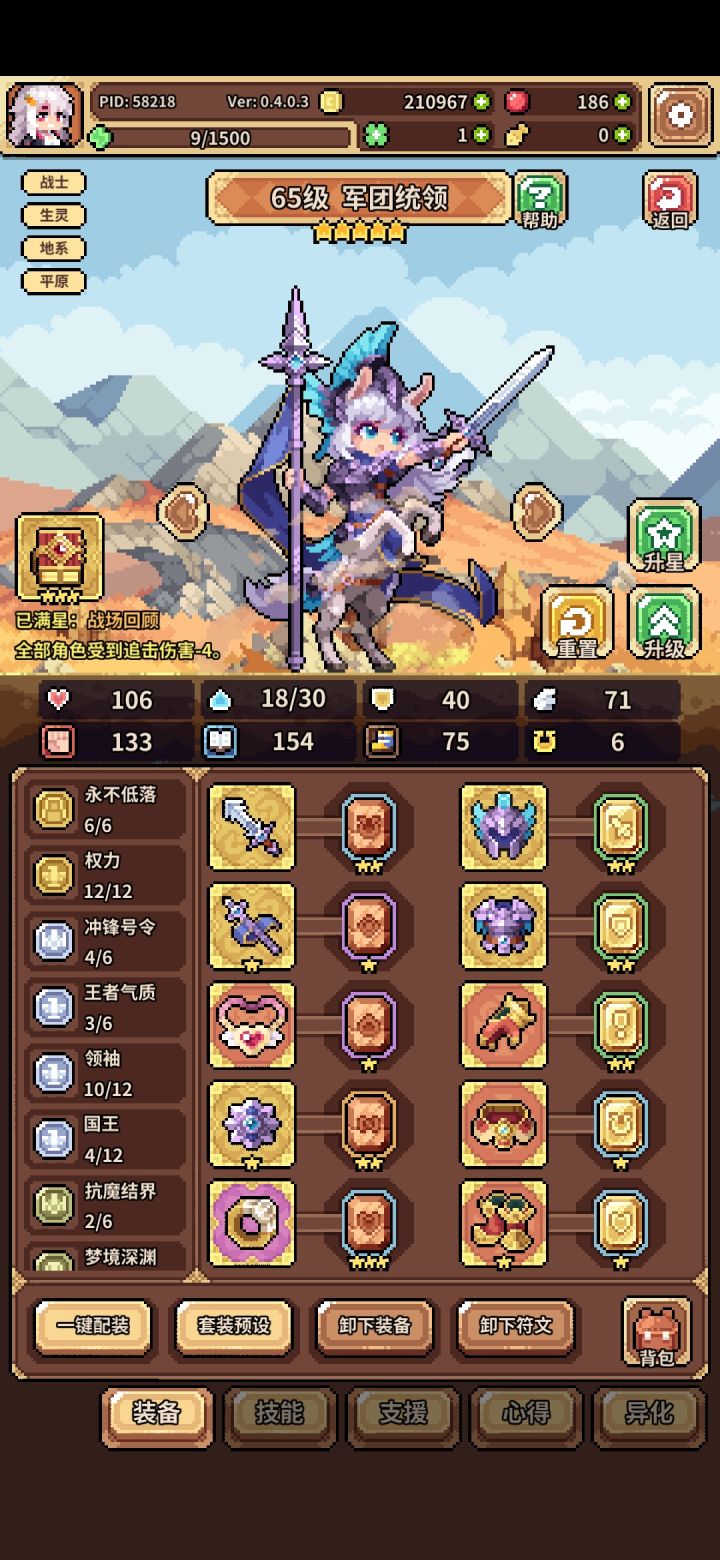 1、感电:改为限制敌人获得魔力,每次最多生效6点感电,生效后消耗。例如,挨打获得魔力可以直接限制到0,普通行动回合正常10点会变成4点,整体算是小削弱,敌人获得了一定加强。龙女的晕眩小变动:更改为,龙女需要目标无韧性才能触发晕眩效果。2、大部分角色的技能都获得了一定增强,增加了回血效果。3、所有装备都增加了觉醒效果,并且增加了每次升星会依次羁绊增加1。例如,传承0星的词条是222,传承1星的