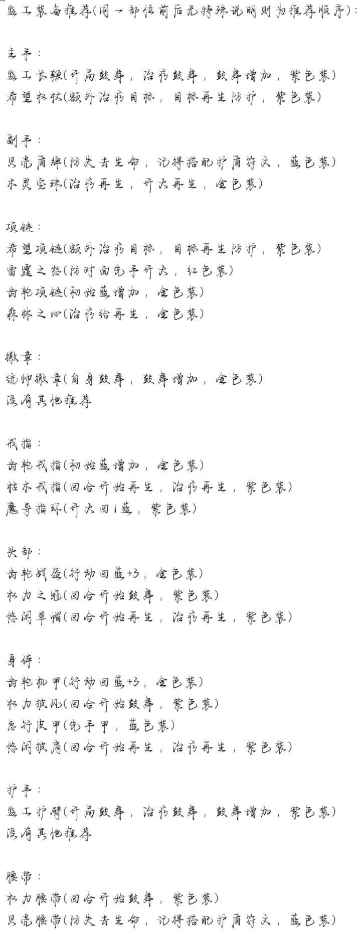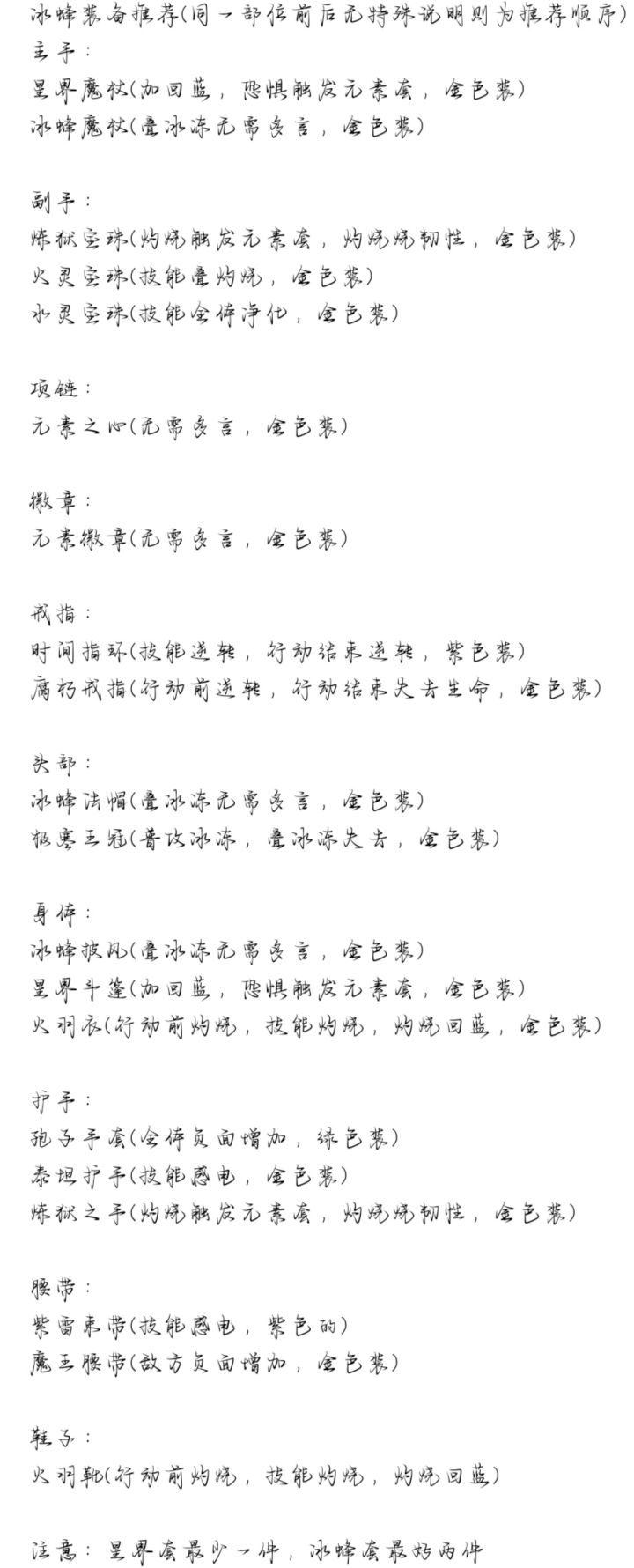 接上回,讲完了『幽暗龙女』和『巨魔监工』,简单讲一下最重要也是最不重要的群体法师。 最重要是因为他是输出大头,不重要是因为他不吃人物,只要是群体法师就可以圆梦了🤓👍(多亏了法制装备的泛用性,绝顶强度) 如上图片所示,不需要明白其中太多原理,只需明白装备思路便好! 图中言冰蜂是因为冰蜂最佳,其它群法也是非常好的(强度全在装备上) 法师装备核心是项链和徽章,用过的,能知道多超标,根据敌方负面增