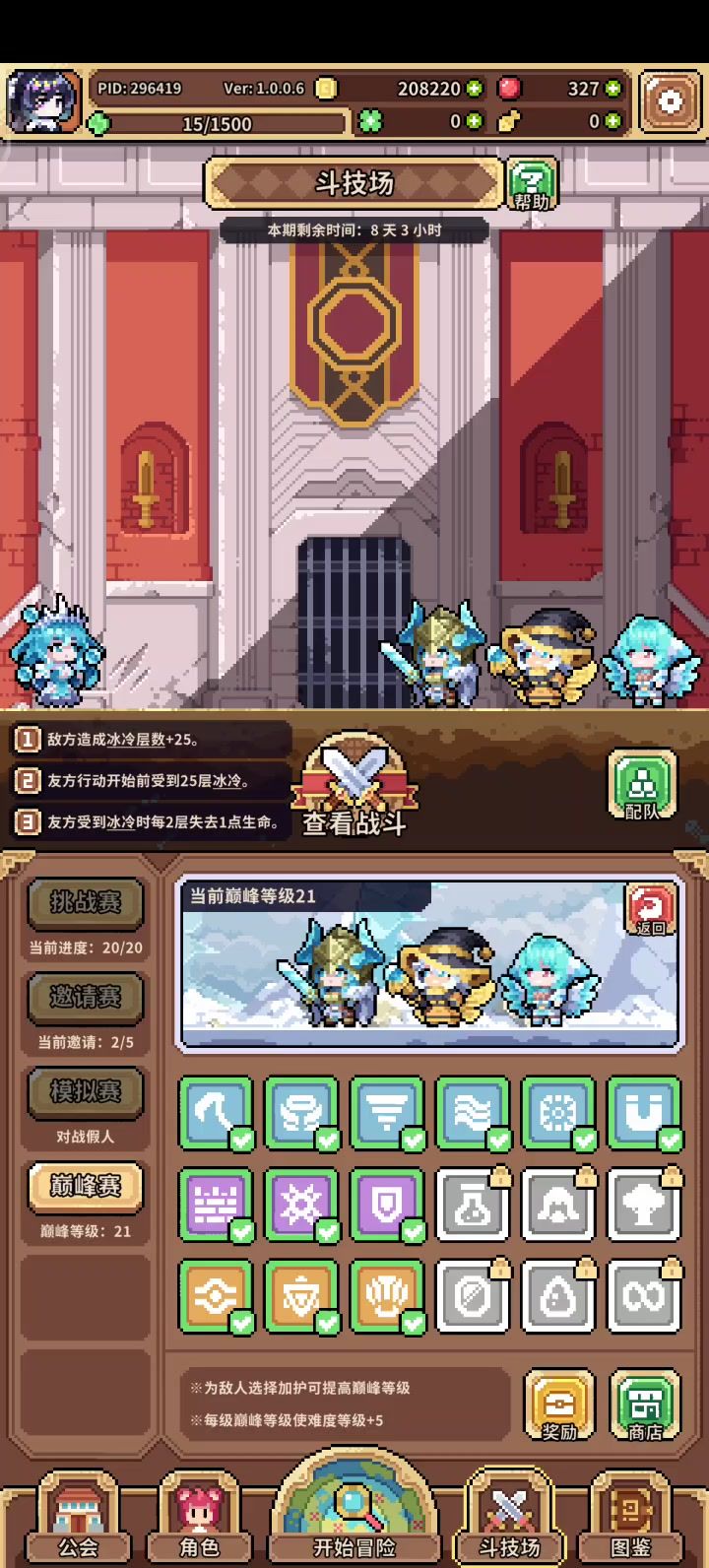 现在冰蜂队除了装备没满星,其他几乎全毕业了,巅峰赛轻松21难度,主线关卡都轻松打过(海洋还没打,具体不清楚),挑战被史莱姆卡住了(免疫掉血,不过金币无所谓了),还要不要转冰邪队