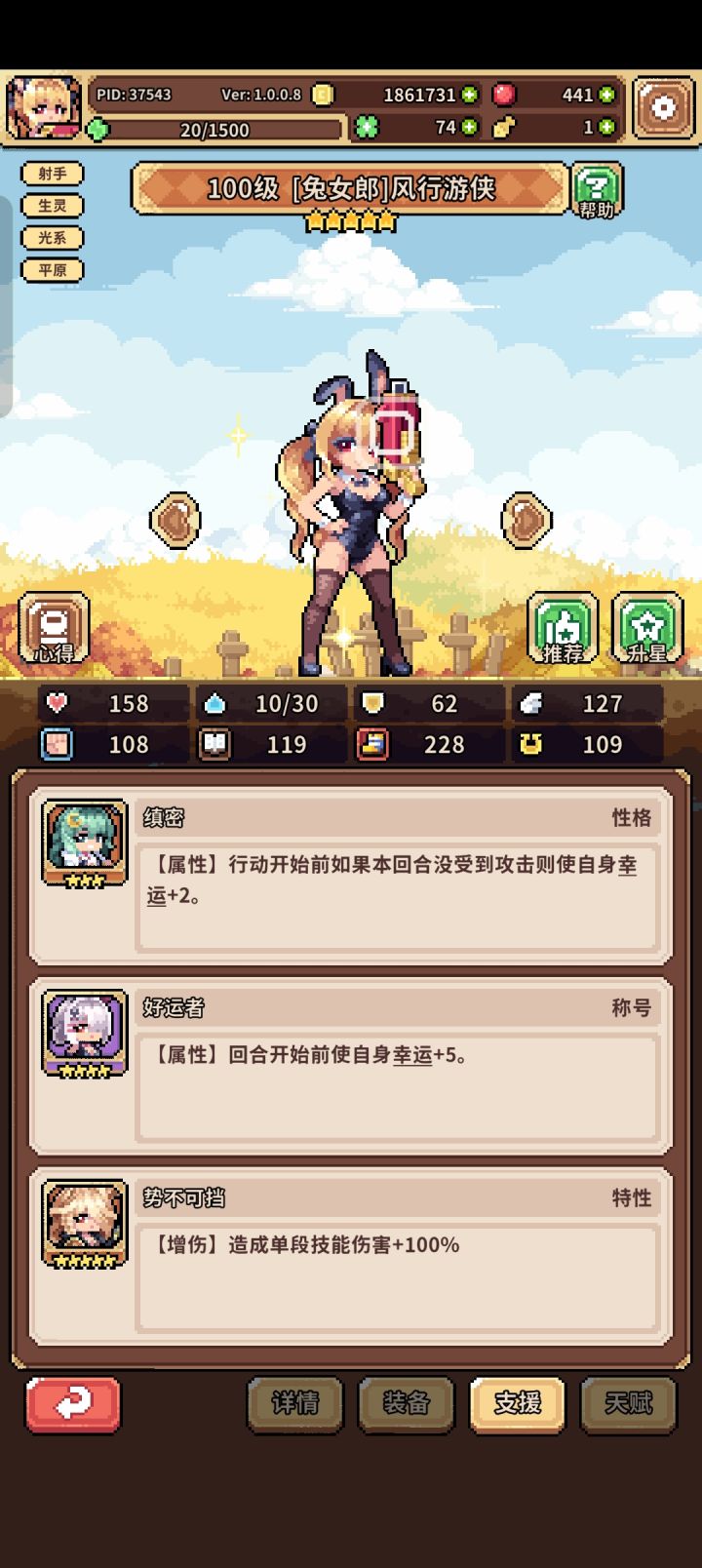 目前兔子一个专属天赋没有,也没刷出九命,没果子了