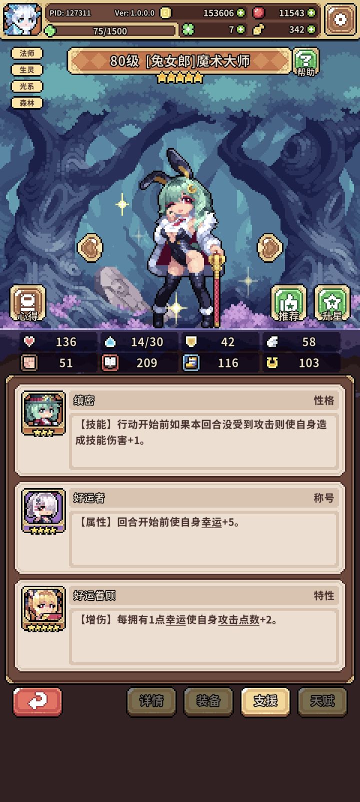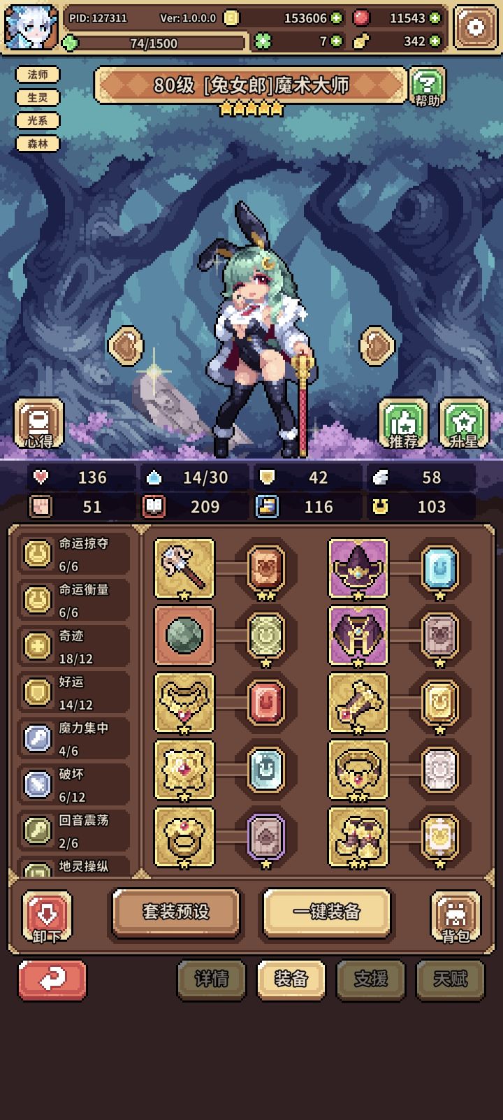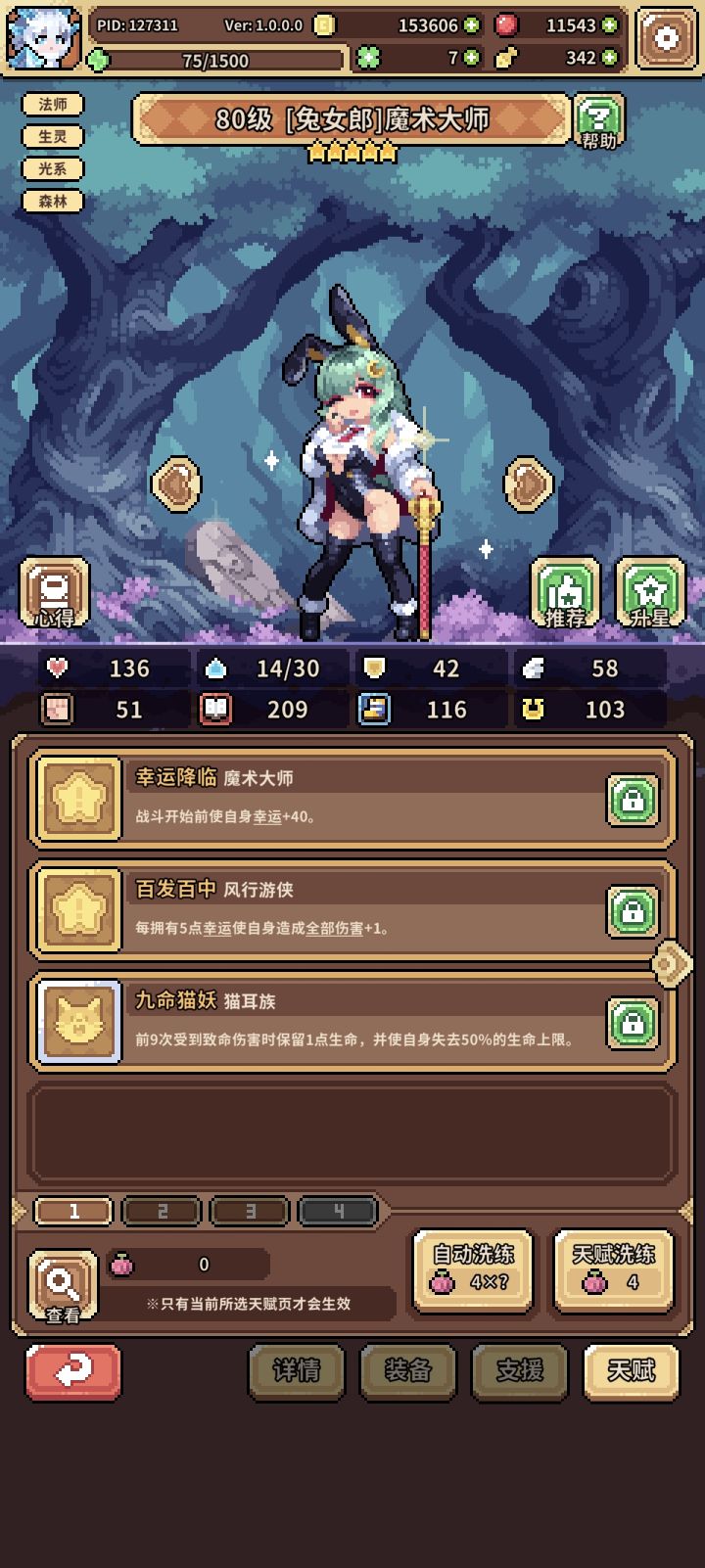 我是玩的兔女郎女枪,3角色没一个金天赋(500果子下去一个能用的金天赋都没有),我人马还升了5星,轴现在乱的很,所有图深渊平均十多层吧,打不过了,估计洗好了天赋能通,强度肯定没焚决高,而且被有些克制,想问下兔女郎魔术师怎么样,我试了下60级的兔女郎魔术师打50深渊木桩前面破防都做不到